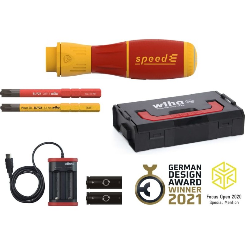 Kompletny, 7-częściowy zestaw z wkrętakiem elektrycznym Speed marki Wiha jest idealny do majsterkowania lub do użytku profesjonalnego.