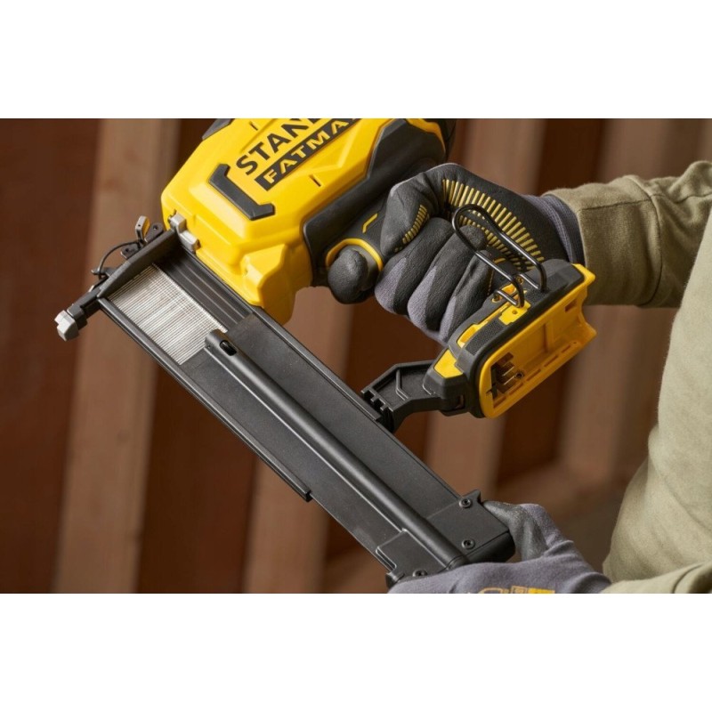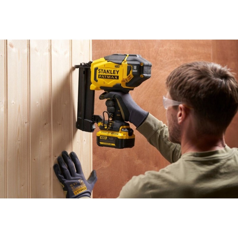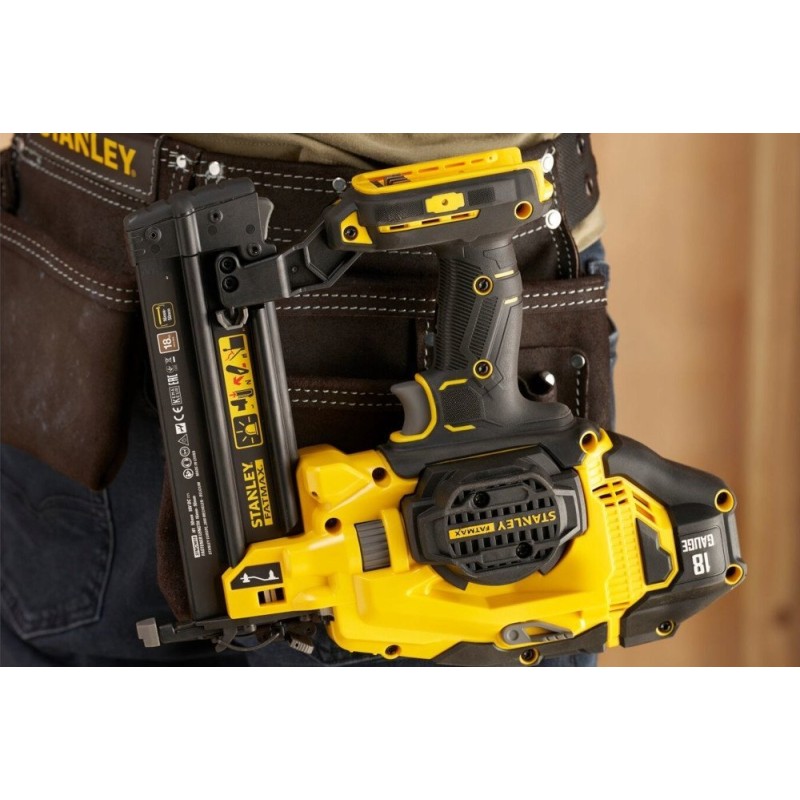 - Gwoździarka należy do systemu STANLEY® FATMAX® V20 pracującego z napięciem 18V - wiele narzędzi w jednym systemie.