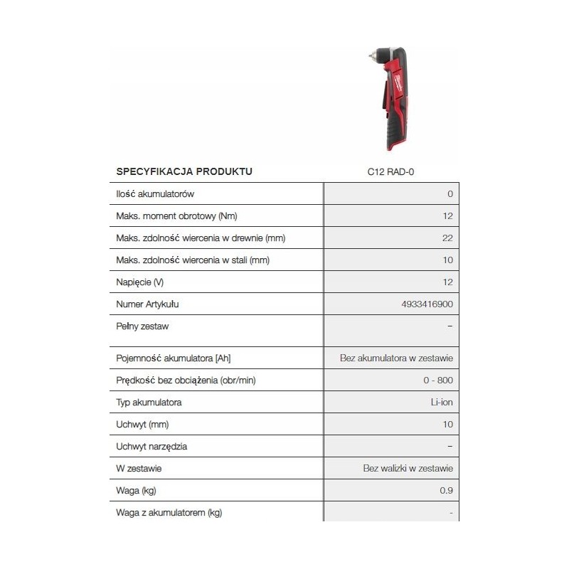 WIERTARKO-WKRĘTARKA KĄTOWA 12V LI-ION C12RAD-202B