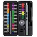 Wszystkie bity w zestawie są posegregowane według kolorów, co umożliwia ich łatwe i szybkie odnalezienie. Taka organizacja sprawia, że praca staje się bardziej efektywna i przyjemna, eliminując frustrację związaną z poszukiwaniem odpowiednich narzędzi.