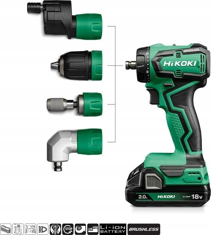 Hikoki HIKOKI WKRĘTARKA 18V DS18DDQWRZ 55Nm 2x2,0Ah BL WYMIENNE GŁOWICE HITSYSTEM