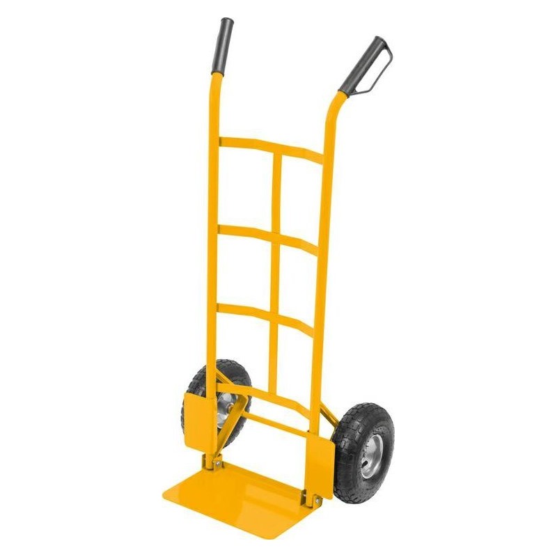 Wózek transportowy młynarka z pompowanymi kołami. Składany podest ułatwia transport i przechowywanie.