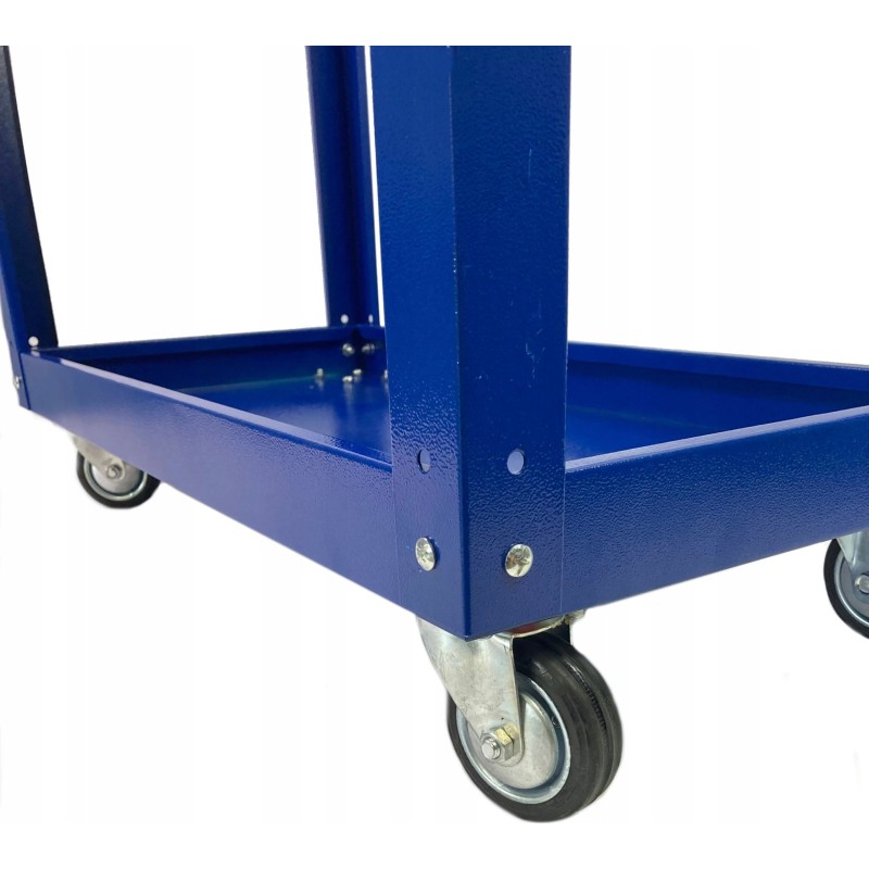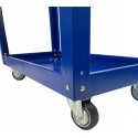 Wózek ma również cztery kółka, które ułatwiają przemieszczanie go po warsztacie czy garażu. Dzięki nim wózek porusza się płynnie i stabilnie, nawet przy dużej wadze załadowanego sprzętu, co czyni go niezwykle praktycznym narzędziem.