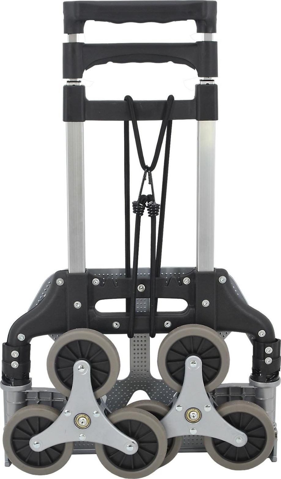 Potrójne gumowane koła zapewniają łatwość przemieszczania na każdej powierzchni, w tym na schodach lub stopniacch.