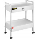 Mobilny wózek laboratoryjny posiada dwie gładkie ramy, które można łatwo pchać. Dodatkowo, górny blat i szuflada zapewniają dodatkową przestrzeń do przechowywania.