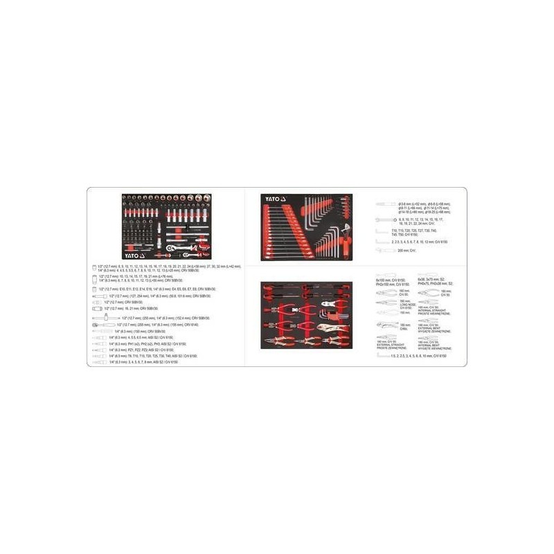 - W trzech z siedmiu szuflad znajdują się aż 157 profesjonalnych narzędzi w piankowych wkładach EVA.