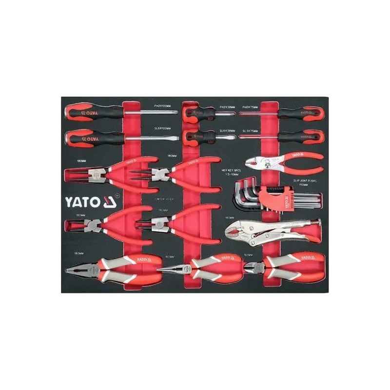 - Nowa szafka serwisowa z narzędziami YT-55308 to unikatowa konstrukcja posiadająca mechanizm blokujący możliwość otwarcia więcej niż jednej szuflady w tym samym czasie.