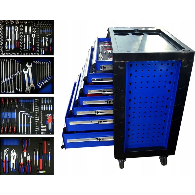 Ten wózek posiada różne przydatne akcesoria dobrej jakości, które są gotowe do użytku od razu po wypakowaniu. Dzięki temu, że posiada już wyposażenie, nie musisz dokupować kluczy, nasadek oraz wielu innych narzędzi potrzebnych w Twoim warsztacie.