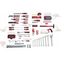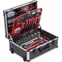 2 x grzechotka z szybką wymianą, 72 zęby (12,7 mm (1/2 cala) / 6,35 mm (1/4 cala)) | 26 x nasadka klucza nasadowego (12,7 mm (1/2 cala): 12 mm · 13 mm · 14 mm · 16 mm · 17 mm · 18 mm · 19 mm · 20 mm · 22 mm · 24 mm · 27 mm · 30 mm · 32 mm / 6,35 mm (1/4 cala): 4 mm · 4,5 mm · 5 mm · 5,5 mm · 6 mm · 7 mm · 8 mm · 9 mm · 10 mm · 11 mm · 12 mm · 13 mm · 14 mm) | 2 x nasadki do świec zapłonowych (16 mm · 21 mm · mm) | 4 x przedłużenie (12,7 mm (1/2 cala): 125 mm · 250 mm / 6,35 mm (1/4 cala): 55 mm · 100 mm) | 2 x przegub Cardana (12,7 mm (1/2 cala) / 6,35 mm (1/4 cala)) | 1 x adapter (6,35 mm (1/4 cala) czworokątny do 6,35 mm (1/4 cala) sześciokątny) | 1 x adapter z uchwytem T (12,7 mm (1/2 cala)) | 1 x uchwyt ślizgowy (6,35 mm (1/4 cala)) | 1 x klucz płaski 250 mm | 9 x klucz oczkowy (8 mm · 10 mm · 11 mm · 1 mm · 1 mm · mm · 2 mm · 13 mm · 15 mm · 17 mm · 19 mm · 21 mm) | 9 x klucz sześciokątny z głowicą kulową (1,5 mm · 2 mm · 2,5 mm · 3 mm · 4 mm · 5 mm · 6 mm · 8 mm · 10 mm).