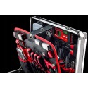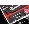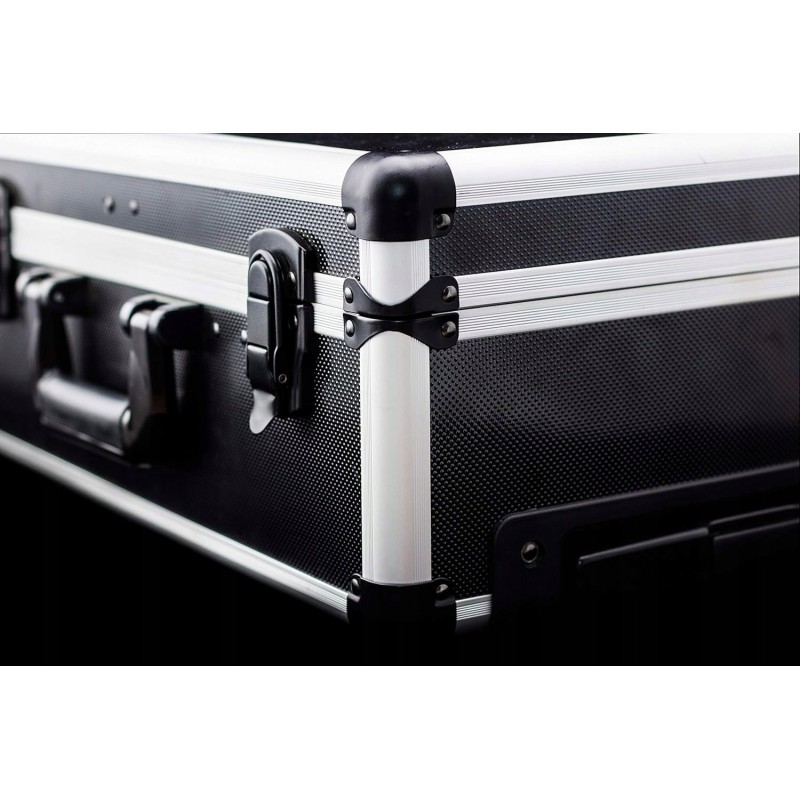 Aluminiowa walizka najwyższej jakości wyposażona w zaokrąglone krawędzie i wzmocnione narożniki. Wygodny wysuwany uchwyt i zintegrowane kółka zapewniają płynny transport. Twoje narzędzia zawsze będą odpowiednio ulokowane i łatwo dostępne w bezpiecznym i wygodnym przechowywaniu.