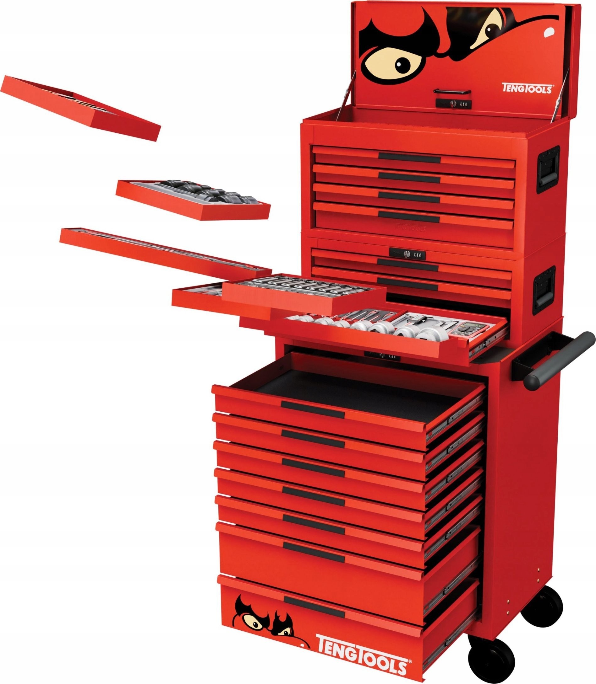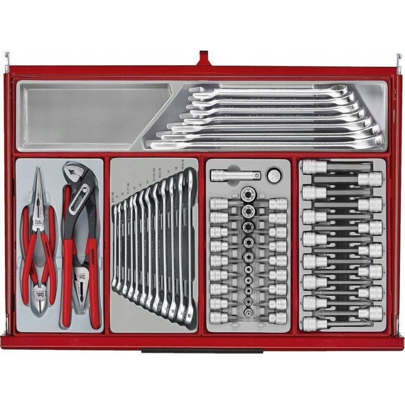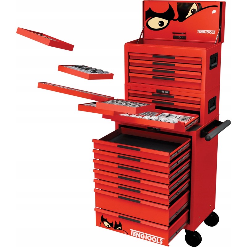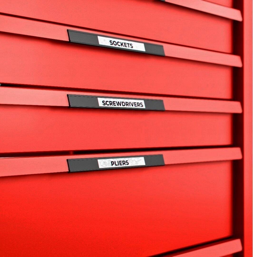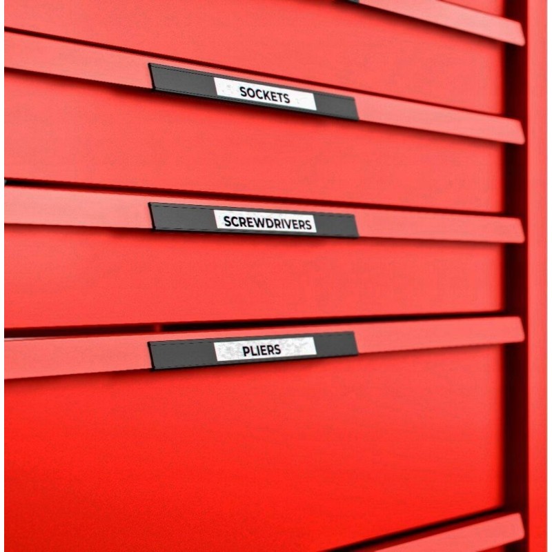 System kontroli narzędzi TengTools umożliwia zorganizowane przechowywanie, co znacząco ułatwia szybki dostęp do potrzebnych narzędzi. Cienkie aluminiowe uchwyty szuflad mają miejsce na etykiety, co dodatkowo ułatwia identyfikację ich zawartości.