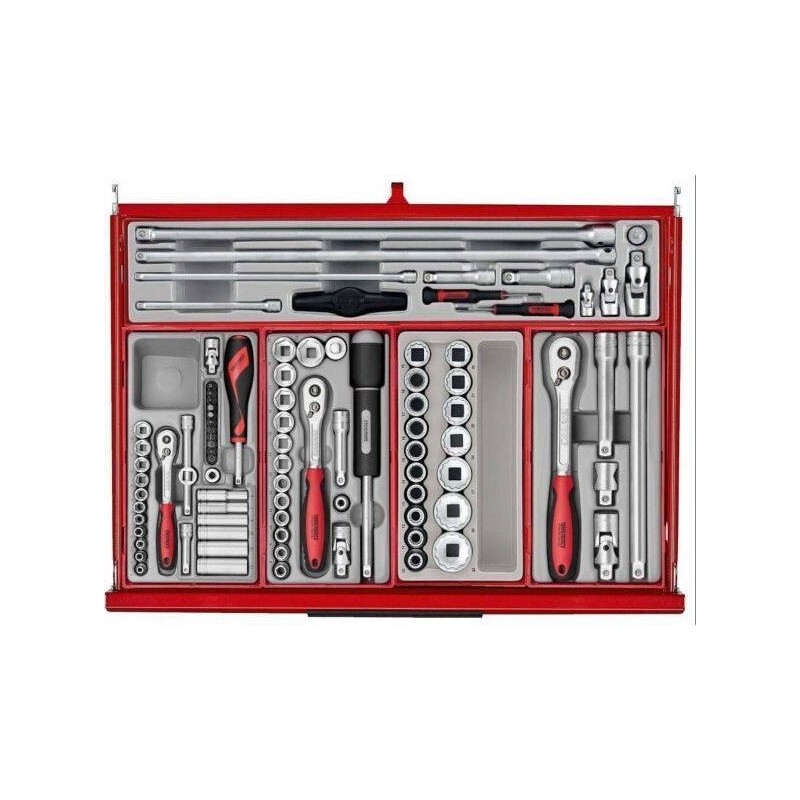 Ten wózek posiada różne przydatne akcesoria dobrej jakości, które są gotowe do użytku od razu po wypakowaniu. Dzięki temu, że posiada już wyposażenie, nie musisz dokupować kluczy, nasadek oraz wielu innych narzędzi potrzebnych w Twoim warsztacie.