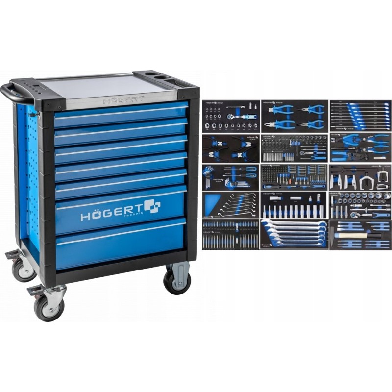 Wózek narzędziowy Högert Technik HOGERT SZAFKA WARSZTATOWA 7 SZUFLAD Z NARZĘDZIAMI 346el.