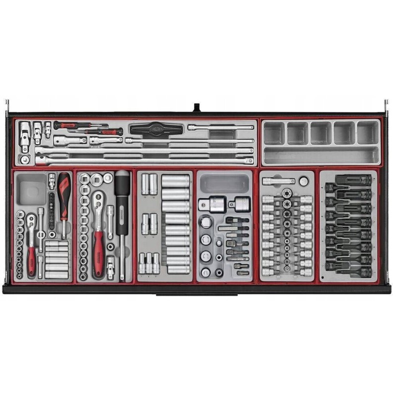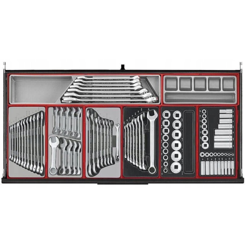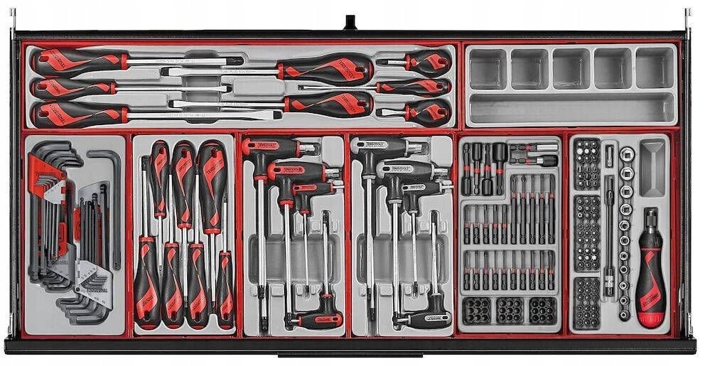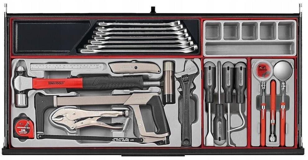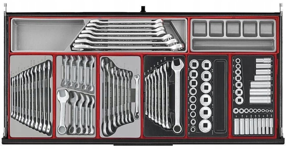 Ten wózek posiada różne przydatne akcesoria dobrej jakości, które są gotowe do użytku od razu po wypakowaniu. Dzięki temu, że posiada już wyposażenie, nie musisz dokupować kluczy, nasadek oraz wielu innych narzędzi potrzebnych w Twoim warsztacie.