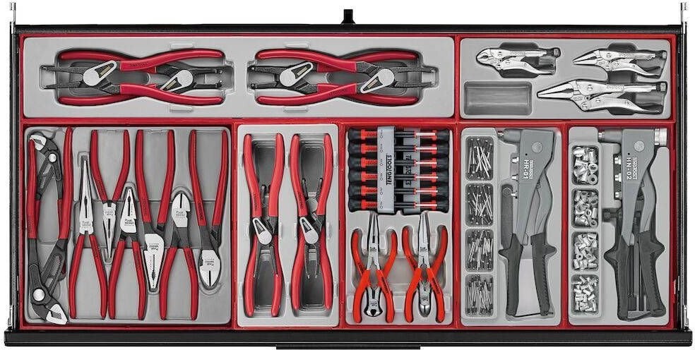 Wózek narzędziowy TKW37B1008T jest wyposażony w system kontroli narzędzi TengTools, co ułatwia identyfikację i organizację narzędzi. Dzięki temu każdy element ma swoje miejsce, co zwiększa efektywność pracy i umożliwia szybki dostęp do potrzebnych narzędzi.