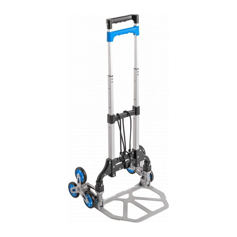 Wózek transportowy zaprojektowano specjalnie do przenoszenia ciężkich przedmiotów po schodach w sposób bezpieczny i wygodny. Trwała konstrukcja pozwala na transport załadunku o maksymalnym obciążeniu 70 kg. Został stworzony aby ułatwić codzienną pracę.