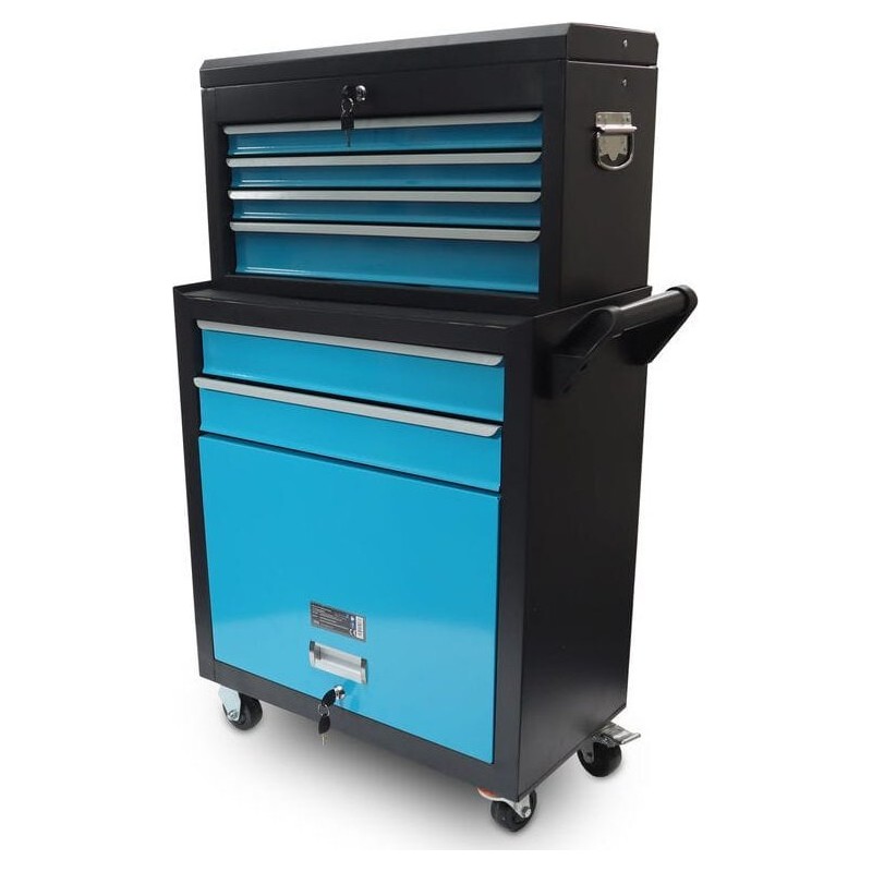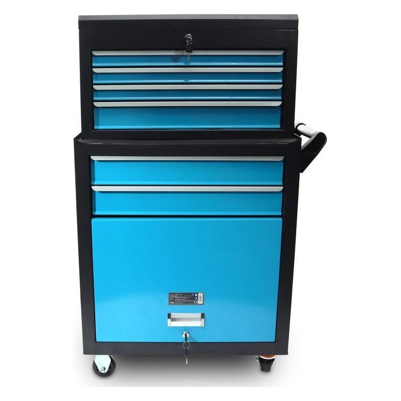 Szafka narzędziowa na kółkach to funkcjonalny wózek, idealny do przechowywania narzędzi w warsztacie lub garażu. Posiada szuflady zamykane na kluczyk, co zapewnia bezpieczeństwo przechowywanych narzędzi . Dzięki wymiarom 70x34x75 cm jest wystarczająco pojemna, by pomieścić różnorodne akcesoria i narzędzia, a jednocześnie kompaktowa i łatwa do ustawienia w każdym pomieszczeniu. Kółka umożliwiają łatwe przemieszczanie wózka, a oddzielna skrzynka na narzędzia zapewnia dodatkową przestrzeń na mniejsze przedmioty. Idealna do organizacji narzędzi i zapewnienia porządku w warsztacie! ⚙️????