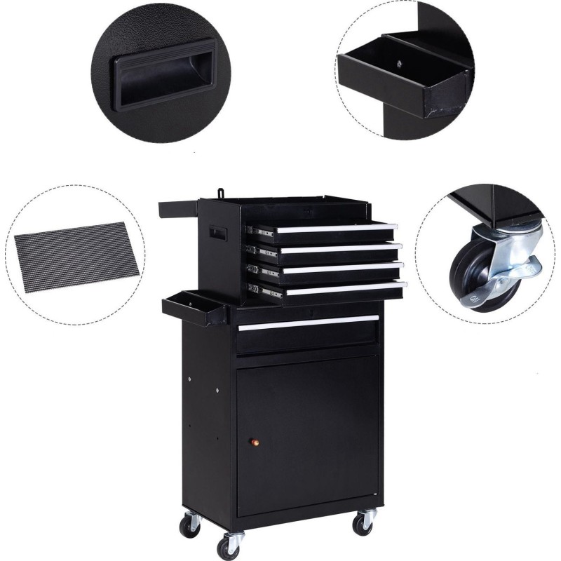 Wózek Narzędziowy 5 Szuflad 52,5 x 28 x 104,5 cm - Czarny