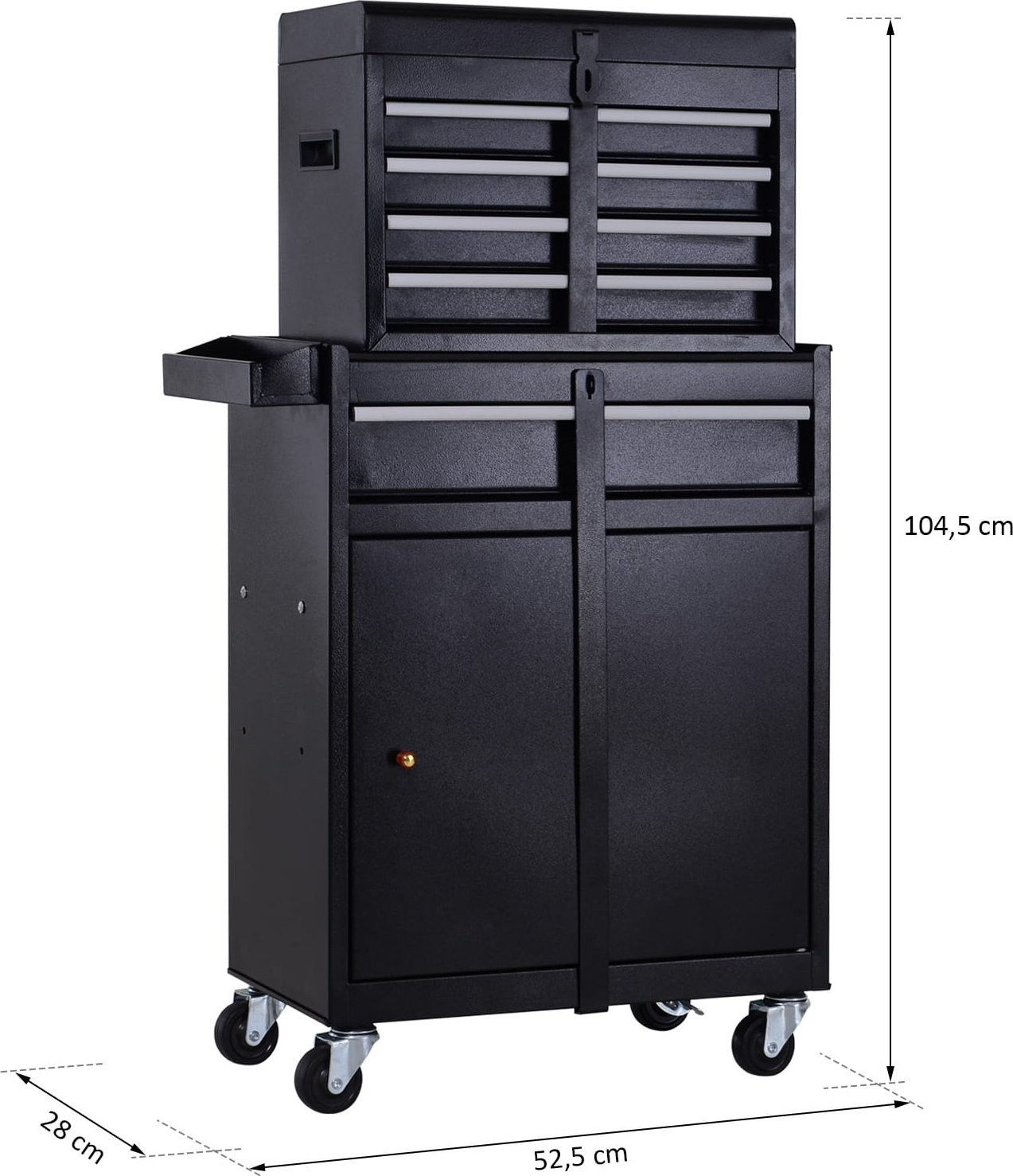 - Wózek narzędziowy wyposażony jest w sztywne kółka oraz blokady kółek dzięki czemu nie będzie samoczynnie się przemieszczał