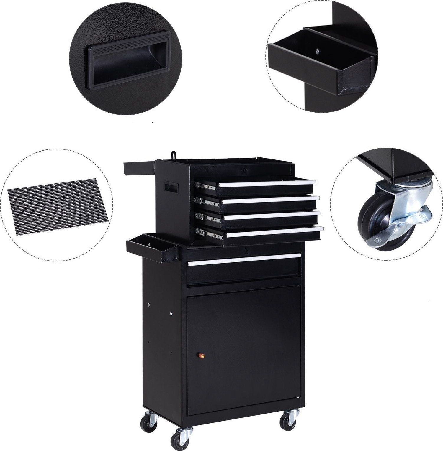 Każde narzędzie używane w warsztacie potrzebuje swojego miejsca, aby zachować należyty porządek. 5 szuflad oferuje całą masę miejsca na najróżniejsze narzędzia. Dodatkowo szafka jest na kółkach, aby można było ją swobodnie transportować z jednego na drugie miejsce.