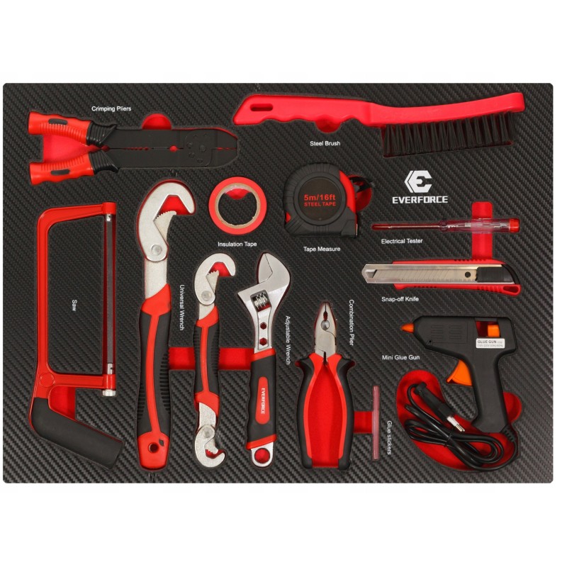 Wkład do wózka narzędziowego marki EVERFORCE to zestaw składający się z 13 niezbędnych narzędzi, które stanowią doskonałe rozwiązanie zarówno dla profesjonalnych mechaników, jak i pasjonatów majsterkowania. Dzięki starannie przemyślanej organizacji, ten zestaw umożliwia szybki dostęp do wszystkich akcesoriów, co znacząco podnosi efektywność pracy.