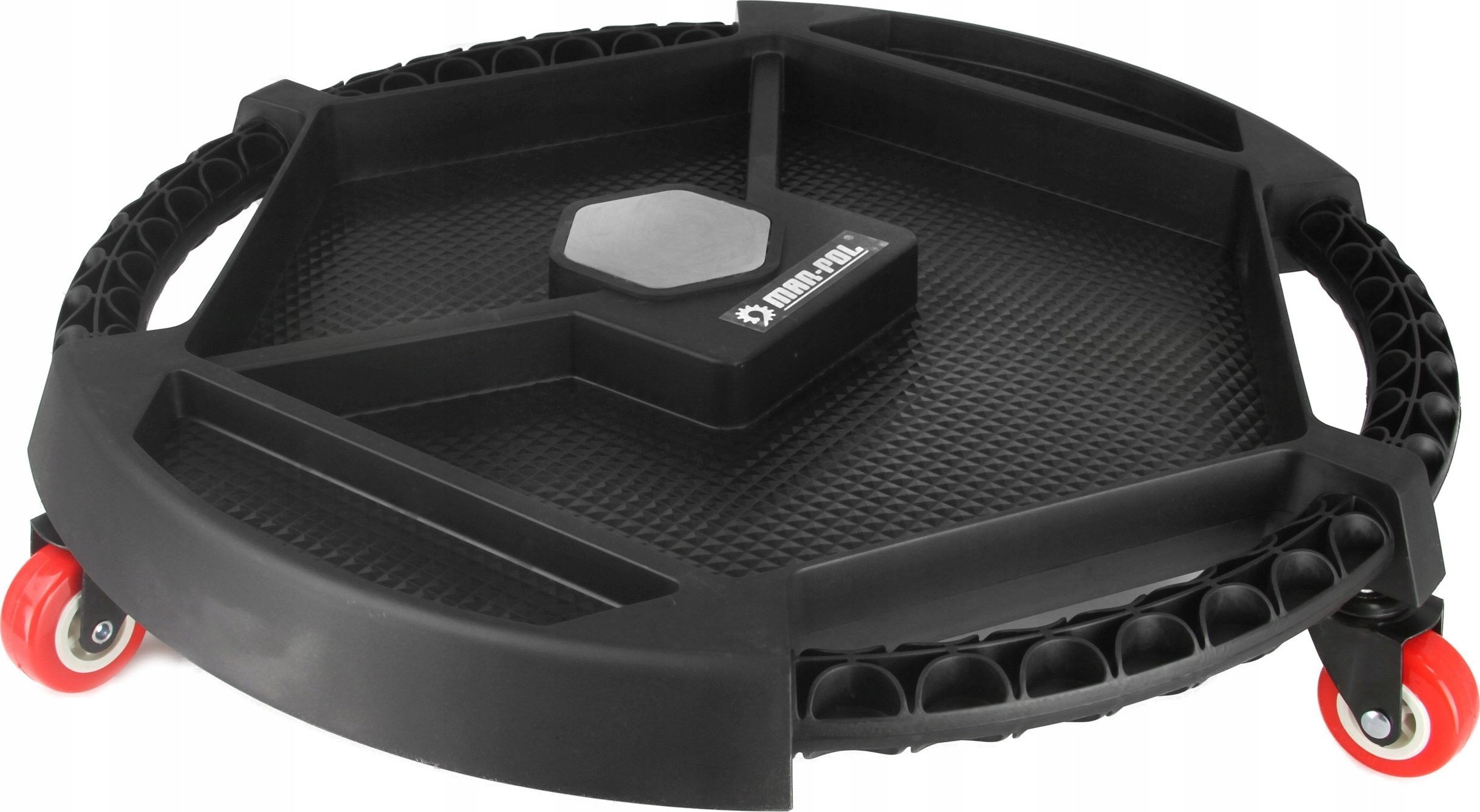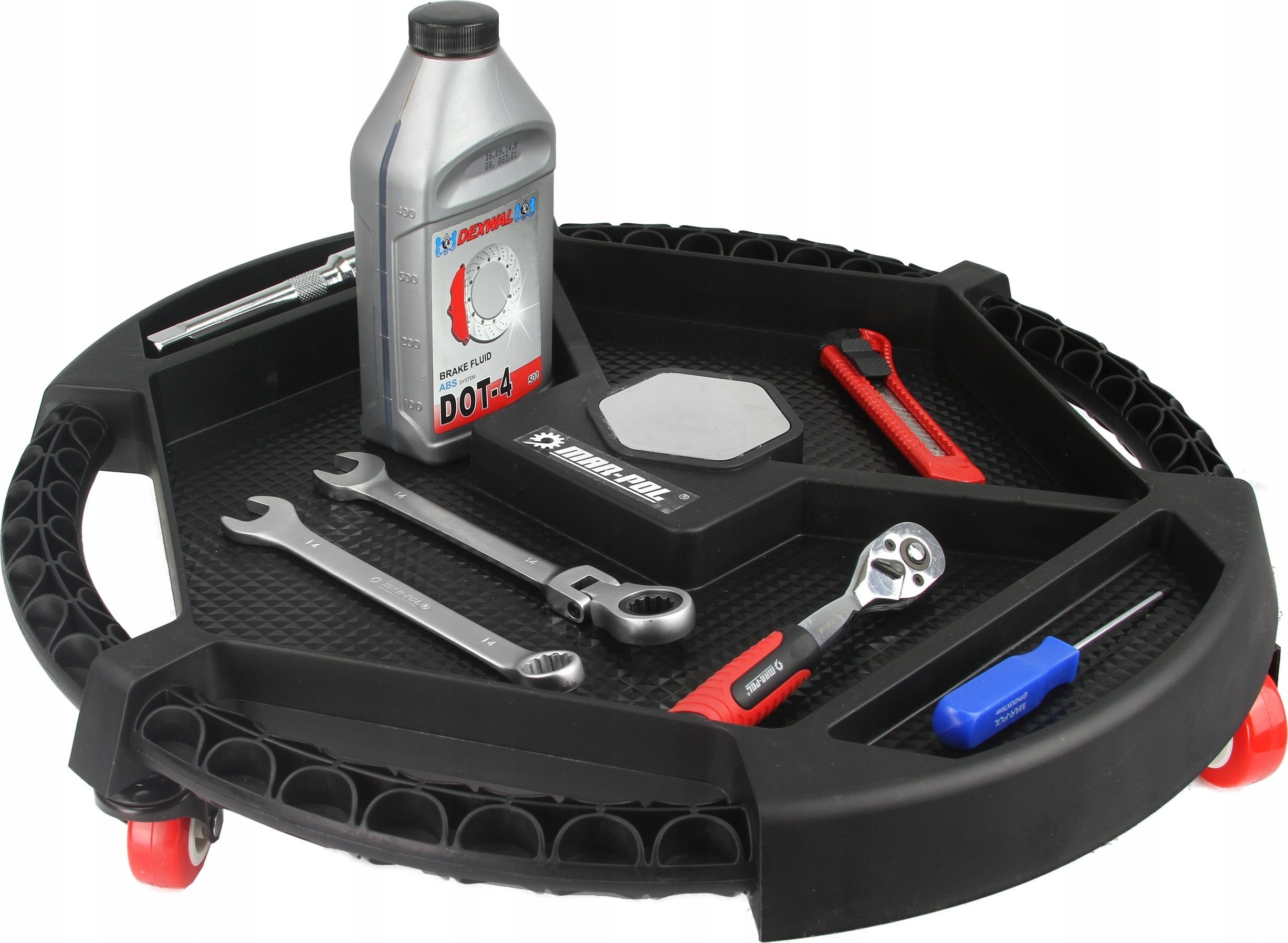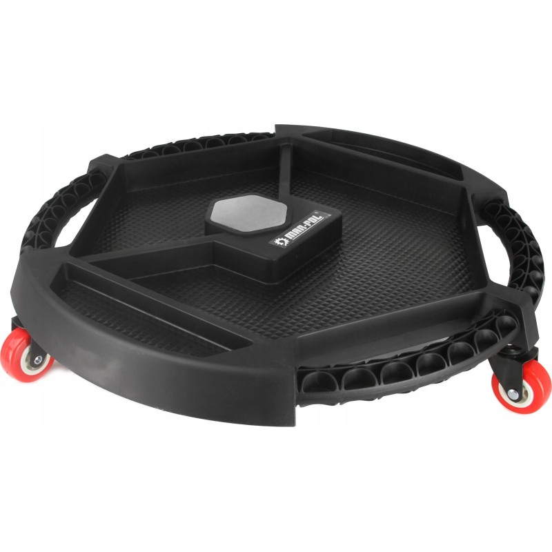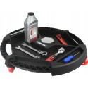 Taca warsztatowa na kołach Mar-Pol to niezwykle praktyczne rozwiązanie, które z pewnością ułatwi pracę w każdym warsztacie. Dzięki średnicy wynoszącej około 50 cm, taca pozwala na łatwe wjechanie pod auto i zabranie ze sobą niezbędnych narzędzi, co czyni ją idealnym towarzyszem dla każdego mechanika.