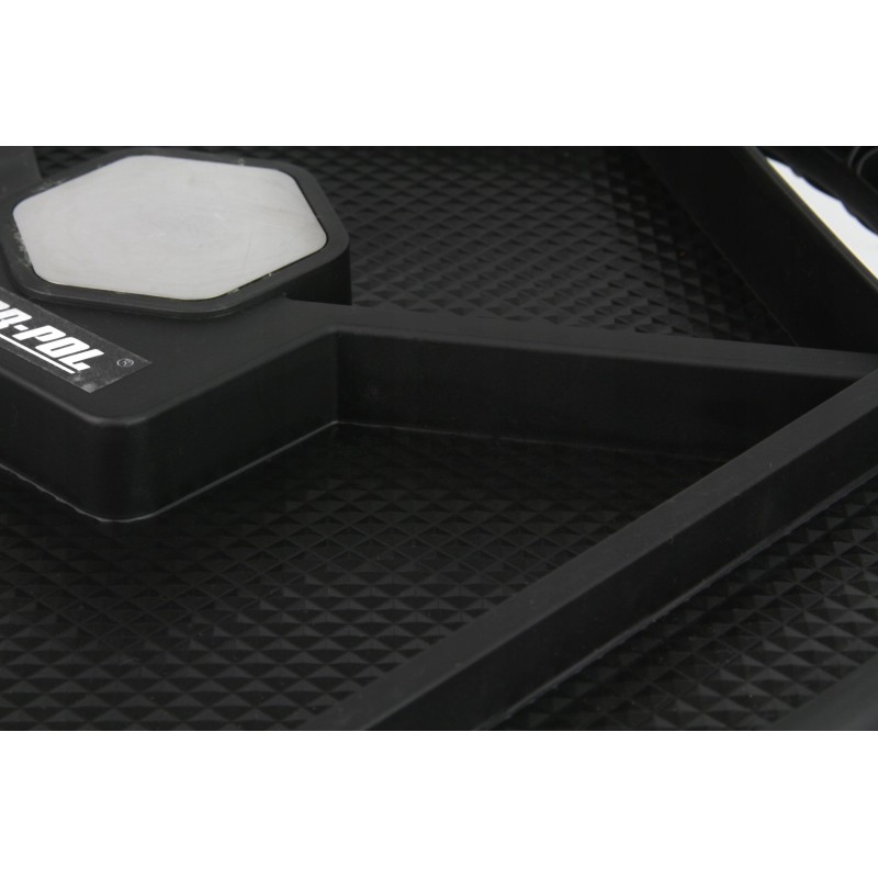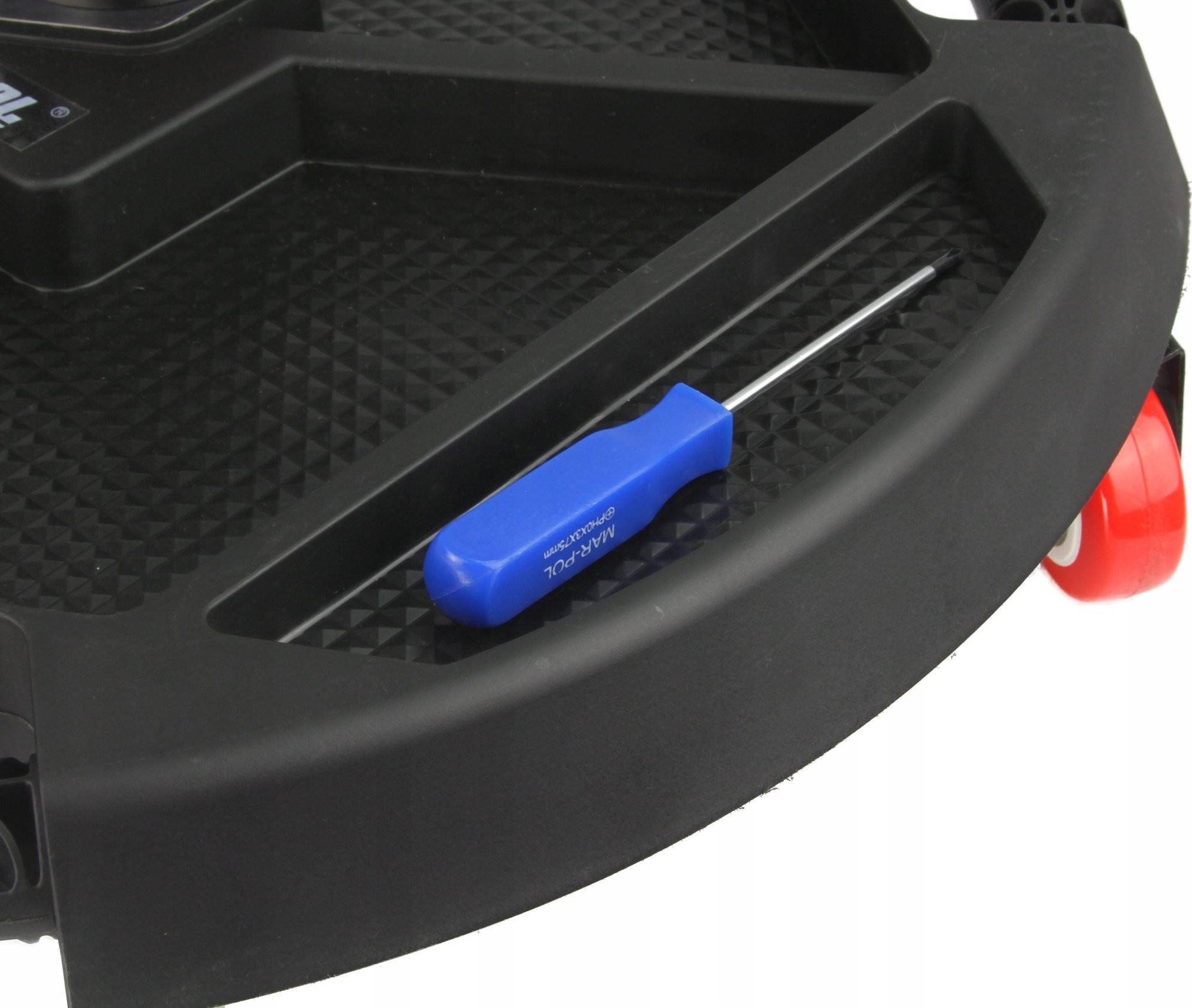 Taca została wyposażona w trzy łożyskowane kółka, co pozwala na swobodne przemieszczanie jej, nawet gdy znajduje się w pozycji leżącej. To znacząco zwiększa komfort pracy, umożliwiając łatwe przesuwanie tacy w obrębie warsztatu.