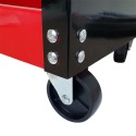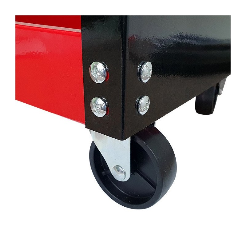 Wózek trzypółkowy warsztatowy narzędziowy 3PA w intensywnym czerwonym kolorze to znakomite rozwiązanie dla każdego, kto poszukuje efektywnego sposobu na przechowywanie oraz transport narzędzi. Jego solidna stalowa konstrukcja zapewnia trwałość i niezawodność, co czyni go idealnym wyborem do warsztatów, serwisów oraz garaży.