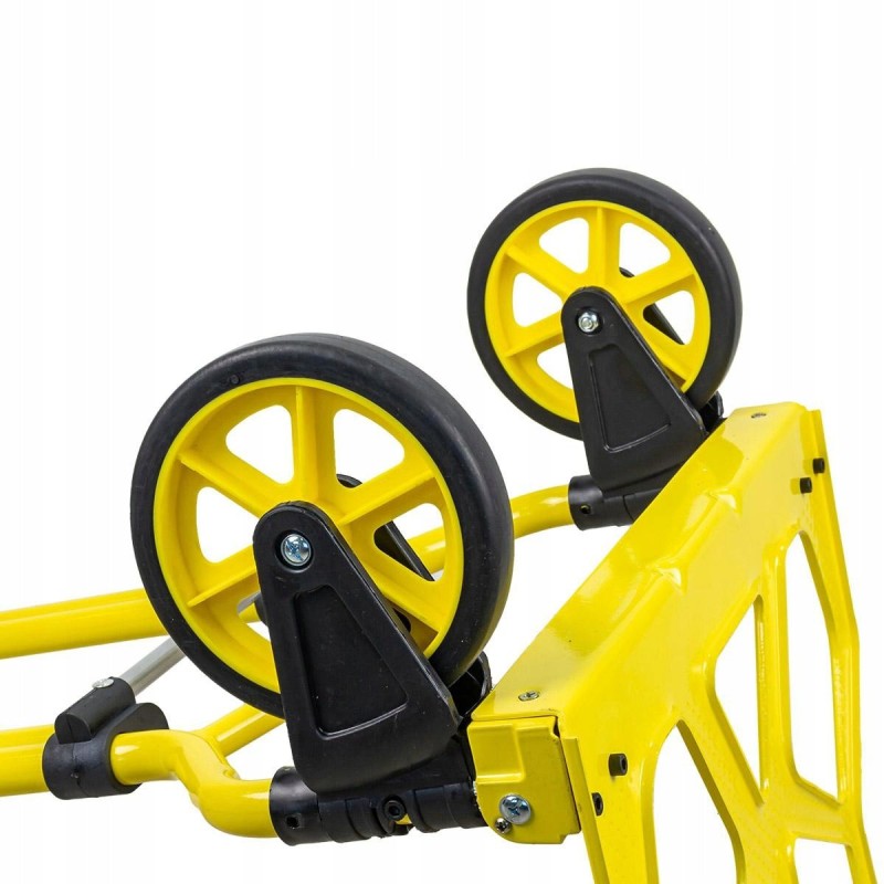 Jednym z kluczowych atutów wózka jest jego łatwość składania. Po zakończeniu pracy, możesz go szybko złożyć i schować, co oszczędza miejsce i ułatwia organizację przestrzeni. To idealne rozwiązanie dla osób, które cenią sobie porządek oraz funkcjonalność.