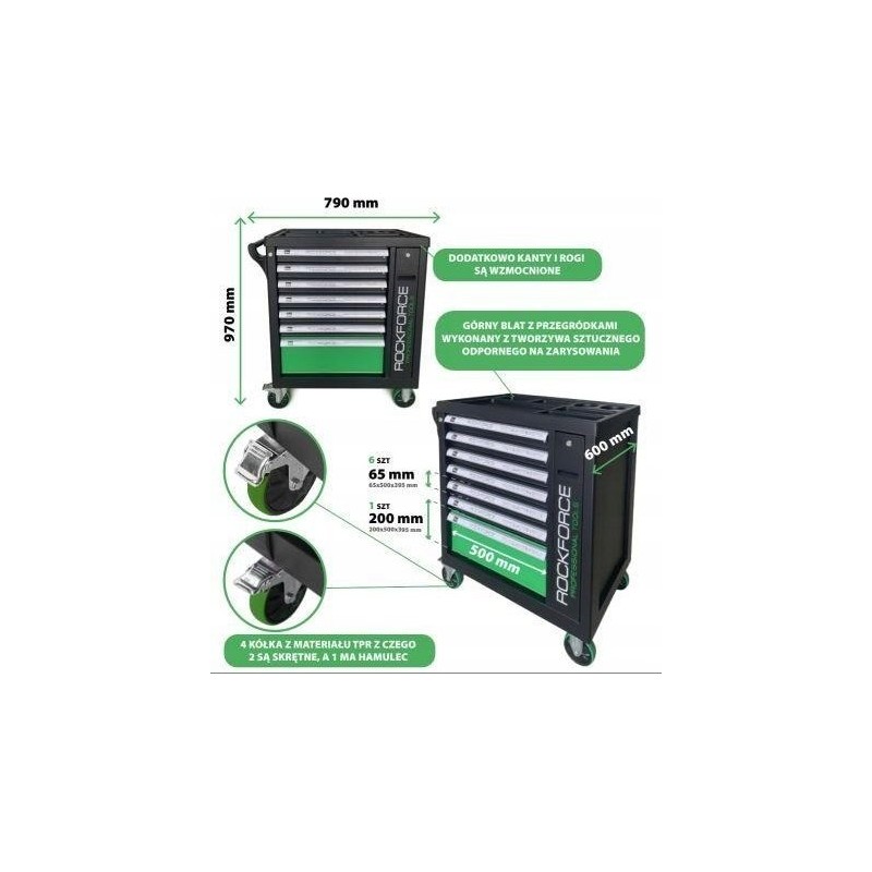 Wózek narzędziowy Rockforce Szafka narzędziowa 7 szuflad + narzędzia 274el. + boczny schowek
