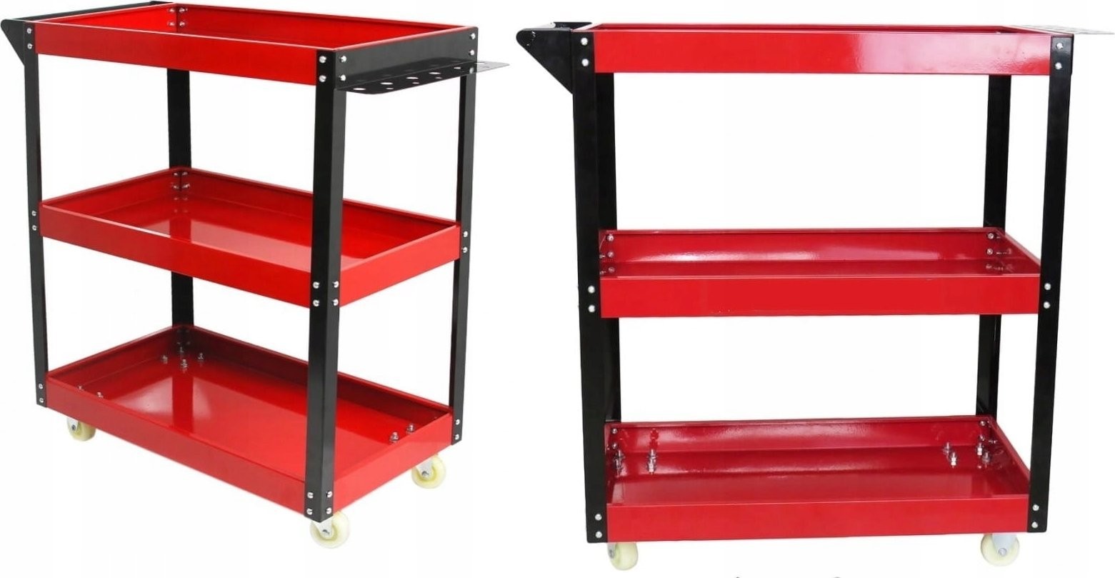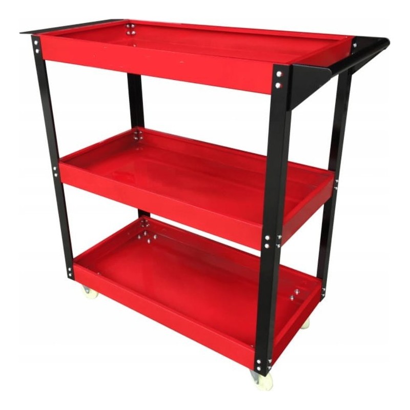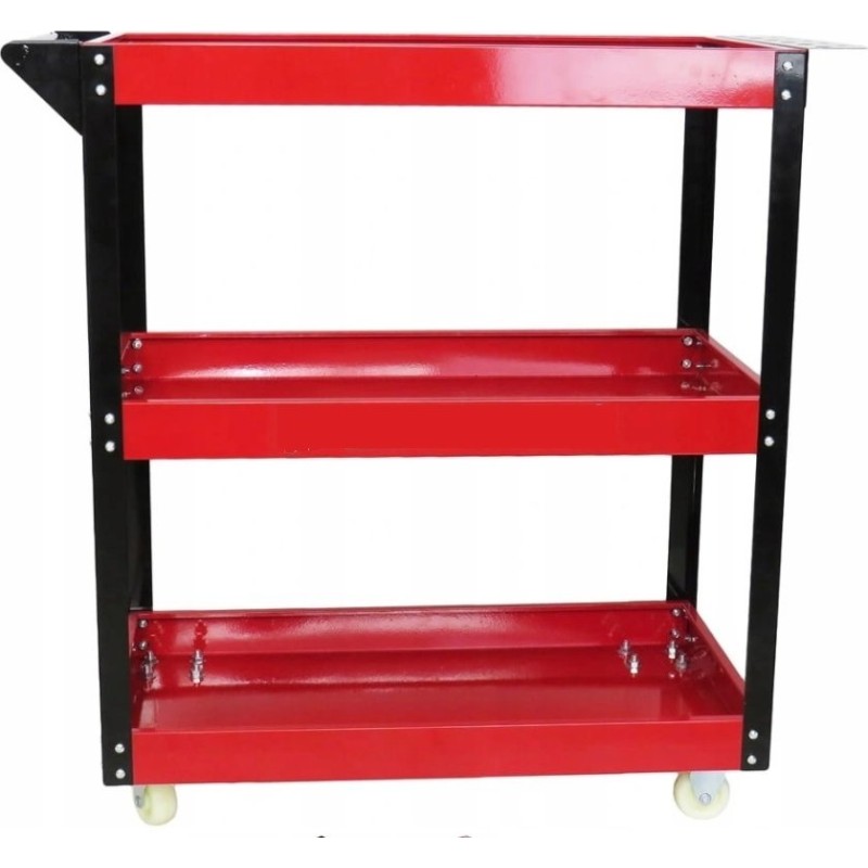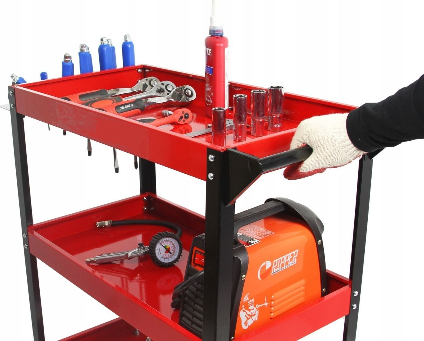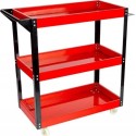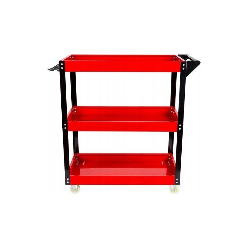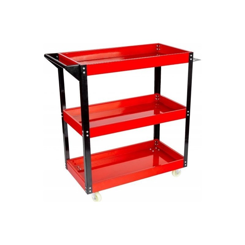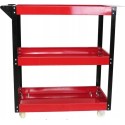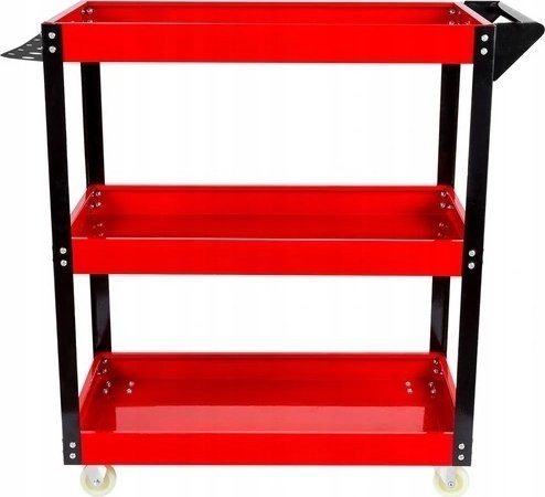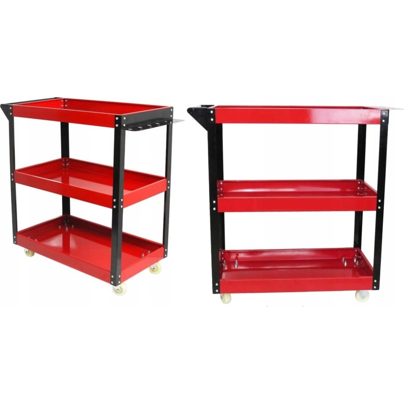 Stalowy wózek z trzema półkami. Idealnie nadaje się do warsztatów, serwisów, a także jest dobrym rozwiązaniem dla majsterkowicza. Ułatwia pracę, każde narzędzie masz zawsze pod ręką.