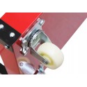 Wyposażony został w cztery kółka, dwa stałe i dwa skrętne łożyskowane, oraz metalową rączkę ułatwiającą manewrowanie.
