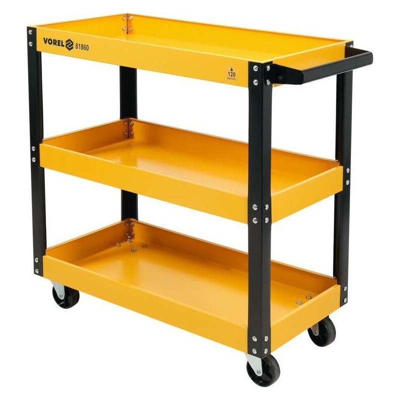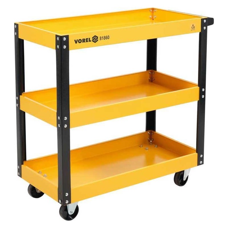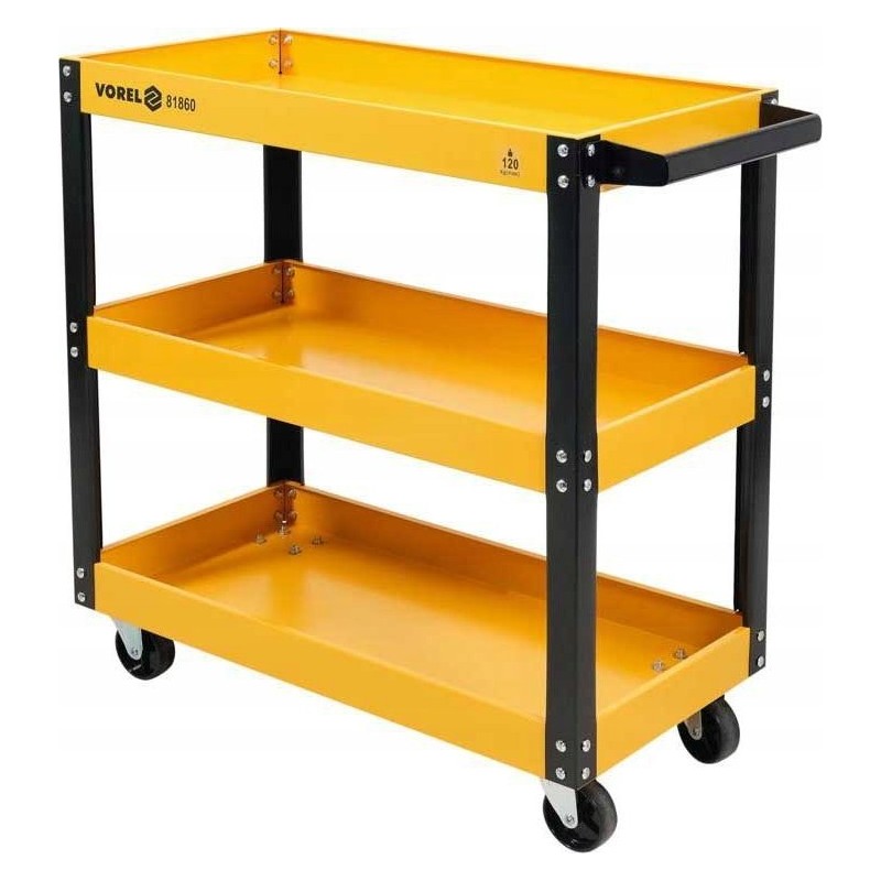 Praktyczny, trzypoziomowy pojazd warsztatowy o maksymalnej nośności 120 kg. Dzięki niemu narzędzia potrzebne do pracy zawsze są na wyciągnięcie ręki.