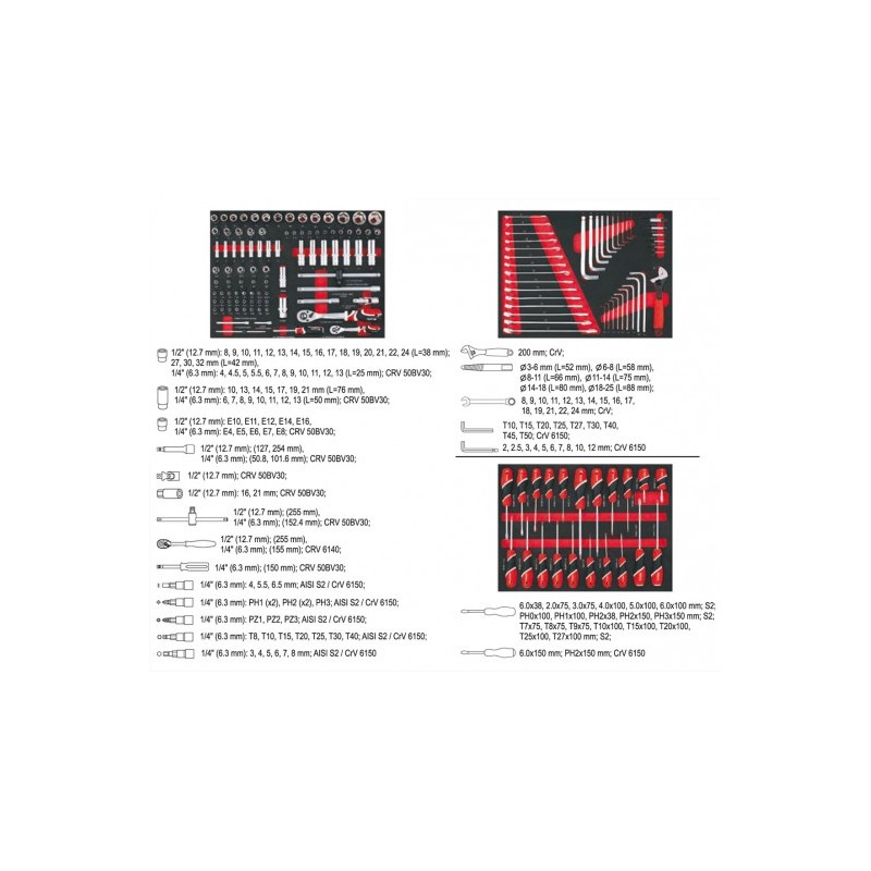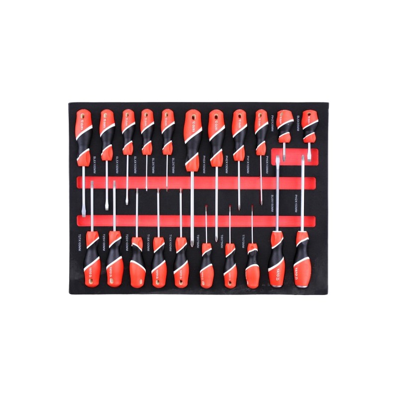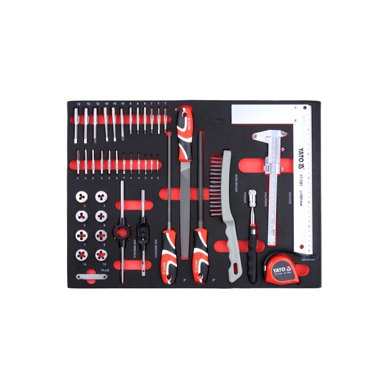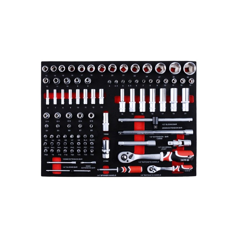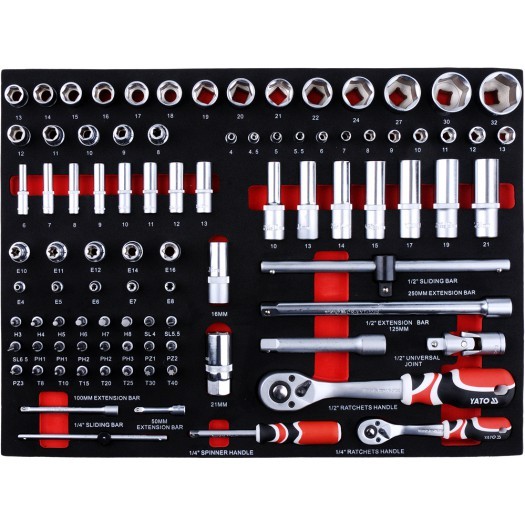 Wózki narzędziowe firmy YATO są produktami najwyższej jakości, dopasowanymi do potrzeb profesjonalnych serwisów samochodowych i mechanicznych oraz wszelkich innych stacjach obsługi pojazdów. Dzięki wysokiej dbałości o wykonanie, produkty firmy YATO są w stanie sprostać oczekiwaniom nawet najbardziej wymagających klientów. 5 z 7 szuflad wypełniono narzędziami wysokiej jakości, dobranymi przez specjalistów pod kątem przydatności i wytrzymałości. Akcesoria są różnorodne, tak by mogły posłużyć do różnych celów i dawały gwarancję dobrze wykonanego zadania, w różnych dziedzinach majsterkowania. Zestaw zawiera od 201 do 250, schludnie poukładanych elementów, których jakość z pewnością Cię zachwyci. Dzięki nim możesz wykonywać praktycznie każdą czynność naprawczą.