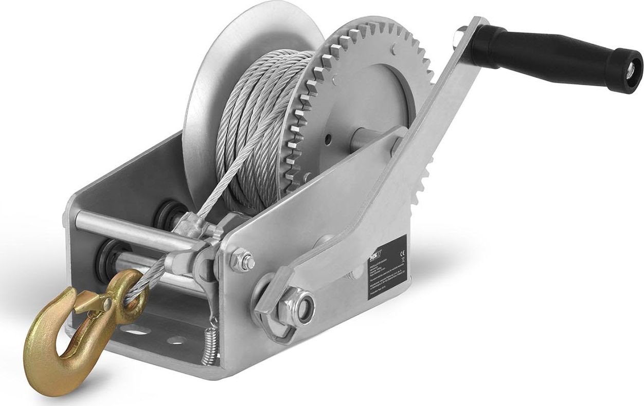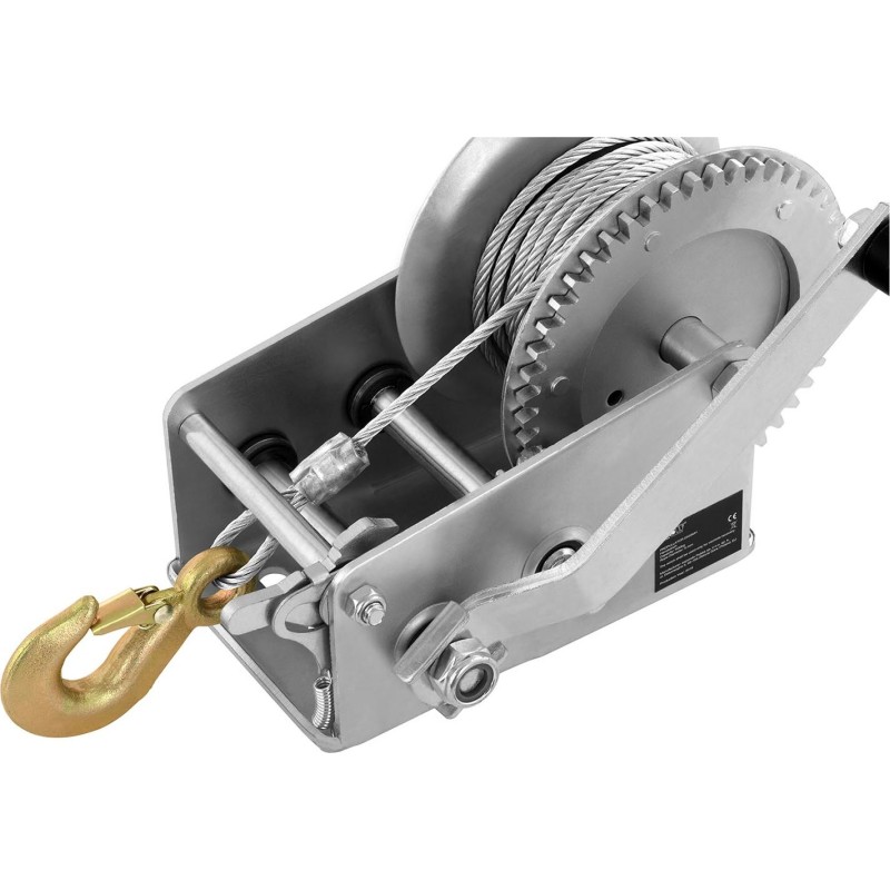 Praktyczna ręczna wyciągarka korbowa jest w stanie uciągnąć obiekty o wadze do 2800 kg, jeżeli znajdują się na kołach. W przypadku przedmiotów leżących i pływających maksymalny udźwig wynosi odpowiednio 1130 kg oraz 2000 kg. Dzięki zastosowaniu przyłożenia 2:1 + 4:1, sprzęt skutecznie zamienia siłę mięśni na siłę ciągnącą, co pozwala na płynne korzystanie z wyciągarki. Pewny chwyt gwarantuje obrotowy uchwyt zamontowany na korbie.