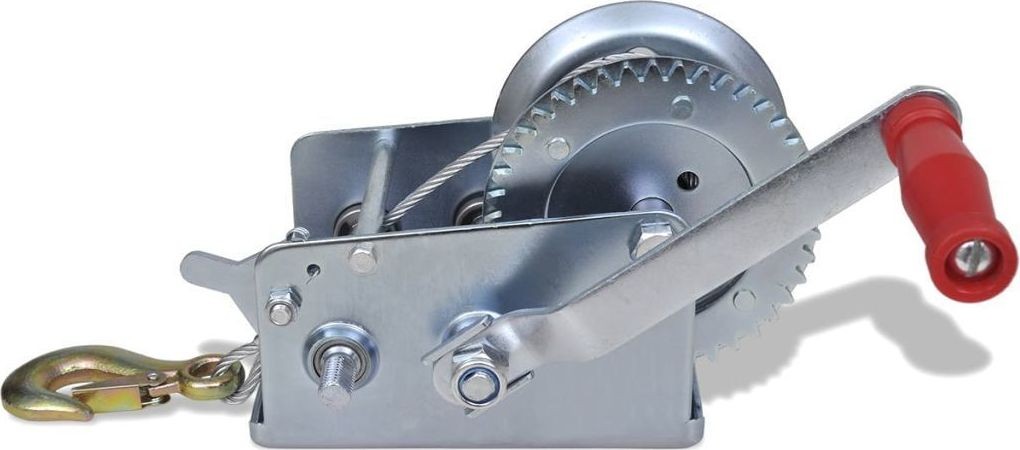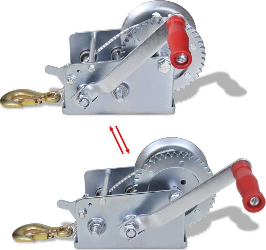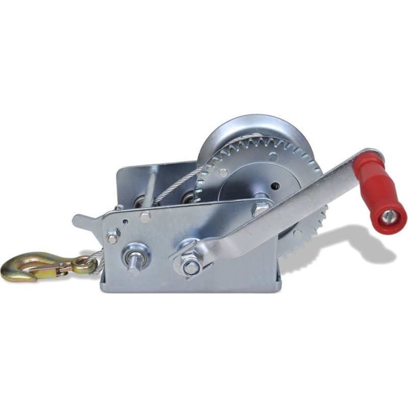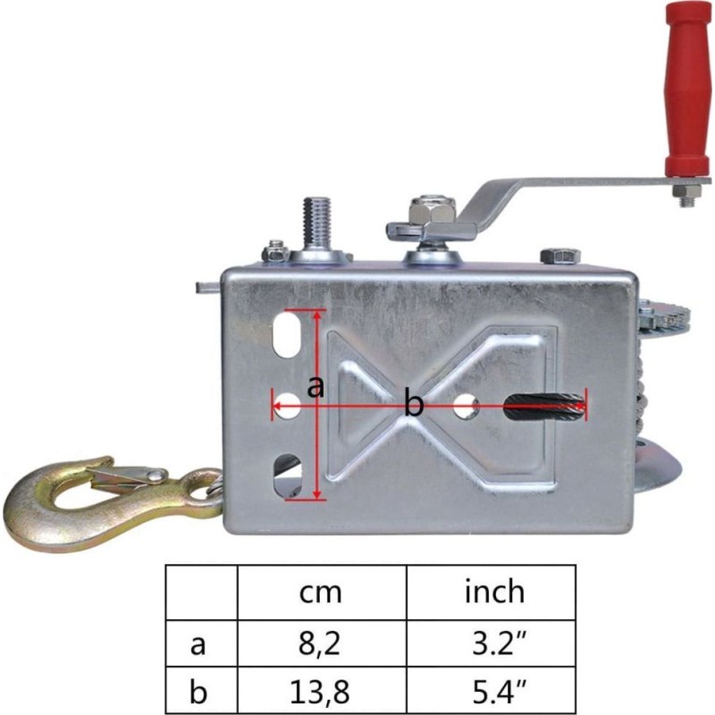 Wysokiej jakości wciągarka ręczna z kablem długości 10 m, jest bardzo mocna. Zastosowanie wysokiej jakości żelaza do jej konstrukcji zapewnia trwałość. Ta wciągarka ręczna idealnie nadaje się do stosowania w ciężarówkach, przyczepach i innych pojazdach. Uchwyt wyciągarki zaprojektowany został do użycia na dwóch osobnych osiach; każda oś ma własne przełożenie, więc możesz ciągnąć szybko (potrzebna jest większa siła) lub wolno (konieczna będzie mniejsza siła, lepszy wybór do ciągnięcia ciężkich przedmiotów).