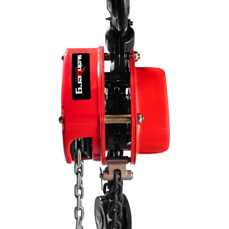 Wciągarka łańcuchowa marki Steinberg Systems sprawdzi się do wygodnego podnoszenia obiektów o wadze do 3000 kg w warsztatach, fabrykach, na placach budowy itp. Urządzenie obsługiwane jest ręcznie, bez dostępu do prądu. Wbudowany hak pozwala zawiesić wyciągarkę np. pod sufitem. Łańcuch ma 5 m długości. Obudowa wykonana została ze stali niskowęglowej, łańcuch ze stali hartowanej, hak na końcu ze stali węglowej. Zastosowano także ocynkowane elektroniczne śruby i nakrętki. Sprzęt wyróżnia się odpornością na duże obciążenia i trwałością.