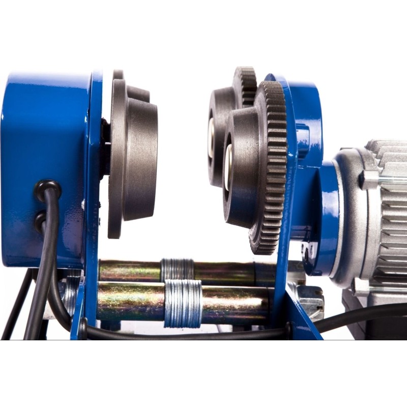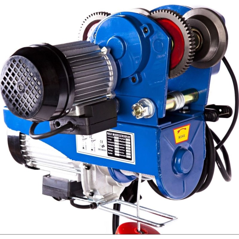 Wydajny silnik o mocy 600 W umożliwia wygodne dźwiganie przedmiotów bez większego wysiłku ze strony obsługującego. Wciągarka jest w stanie podnieść ciężar o wadzę sięgającej 150 kg nawet na wysokość 12 metrów. Mocny hak obraca się o 360 i wyposażony jest w zatrzask zabezpieczający, przez co łatwo go podczepić do ładunku. Funkcjonalne zblocze pozwala zwiększyć nośność suwnicy aż do 300 kg (maksymalna wysokość podnoszonego ciężaru wynosi 6 metrów). Solidne wykonanie zblocza i wytrzymała stalowa linka zapewniają bezpieczeństwo nawet podczas pracy z dużymi ciężarami. Podobnie zresztą jak antypoślizgowe sprzęgło, które zapewnia ciągłą kontrole naprężenia i chroni przed przeciążeniem, elektromagnetyczny układ hamulcowy oraz zabezpieczenie przerywające pracę w chwili osiągnięcia krańcowych wartości naciągu liny. Dźwig suwnicowy Procat 300 umożliwia także transport w poziomie (po zawieszeniu na szynie) z prędkością do 13 m/min. Wózek może poruszać się zarówno po zakrętach (o minimalnym promieniu skrętu 1 metr), jak i po linii prostej. Prowadnica w formie teownika lub dwuteownika powinna mieć co najmniej 110 mm wysokości i 68-94 mm szerokości. Wygoda pracy z urządzeniem została zwiększona za pomocą intuicyjnego pilota. Dzięki niemu możemy sterować wciągarką w górę, dół, lewo i prawo oraz użyć wyłącznika bezpieczeństwa. Cechy i funkcje: