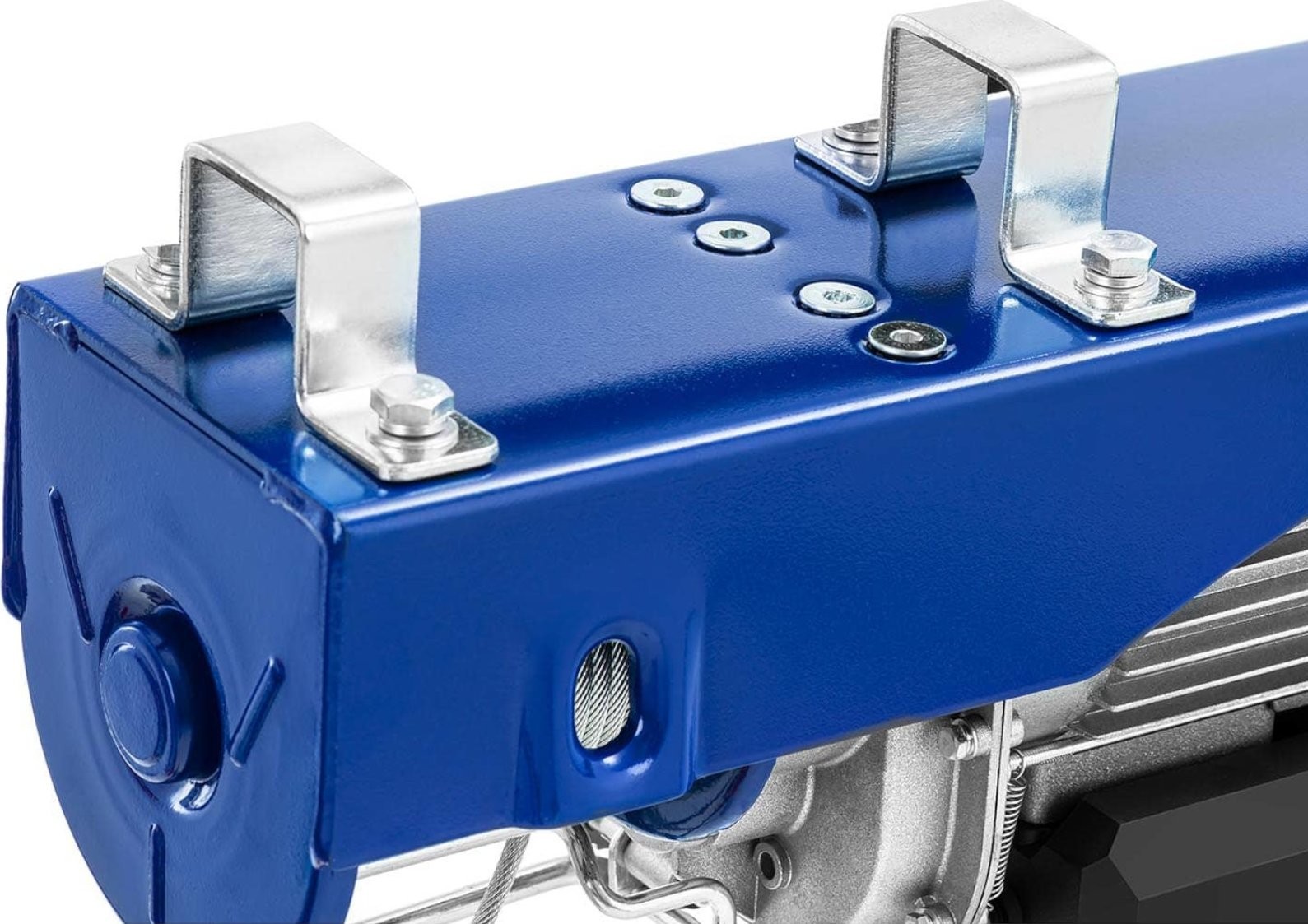 Podnośnik 230 V ma silnik o mocy 1350 W, który umożliwia podnoszenie ciężkich ładunków o masie 400 kg na wysokość do 12 m. Dzięki elektrycznemu podnośnikowi wykonasz pracę w warsztacie i magazynie w szybki i sprawny sposób. Prędkość podnoszenia wynosi 8 m/min, co gwarantuje szybkie i efektywne działanie. Solidna stalowa lina, chroniona przed skręceniem, zapewnia trwałość i niezawodność.