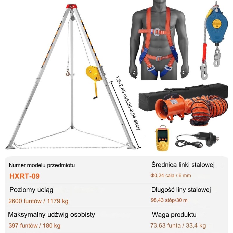 Trójnóg Statyw Ratowniczy z Wciągarką do Przestrzeni Zamkniętych 1180 kg Polski Dystrubutor FV 23% Szybka wysyłka Zapewniamy obsługę posprzedażową. Realizujemy zamówienia dla jednostek budżetowych.
