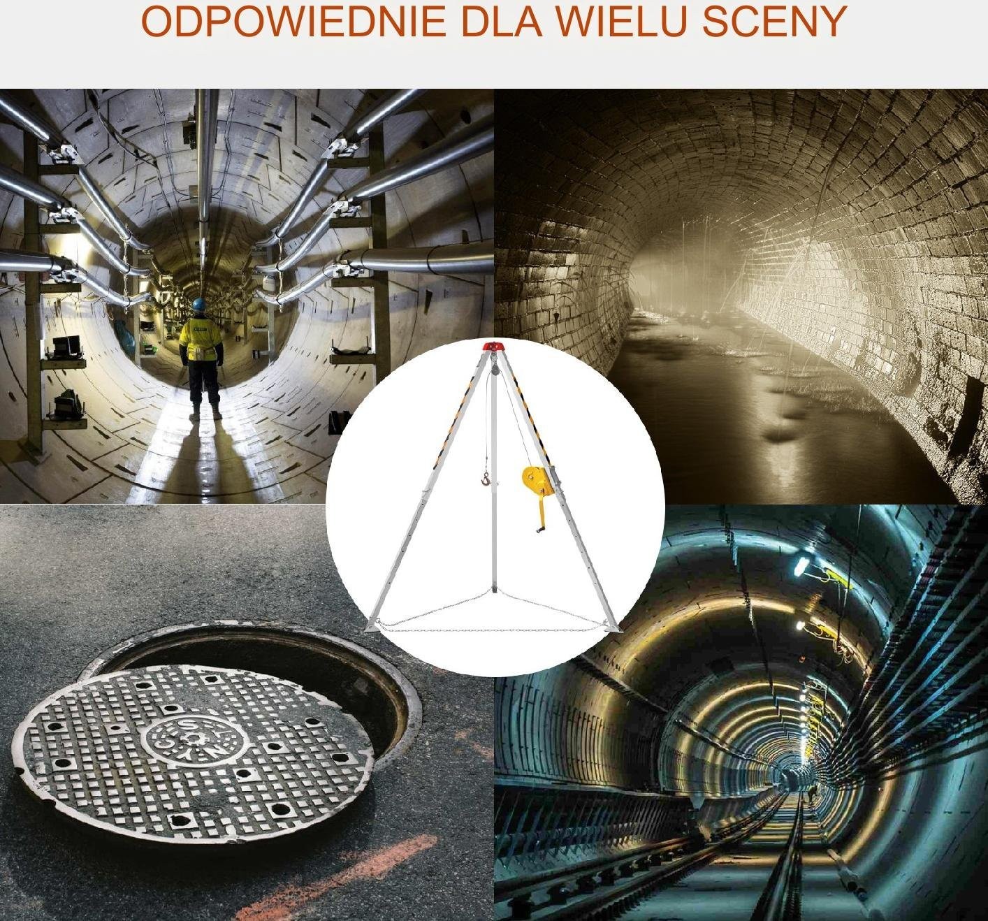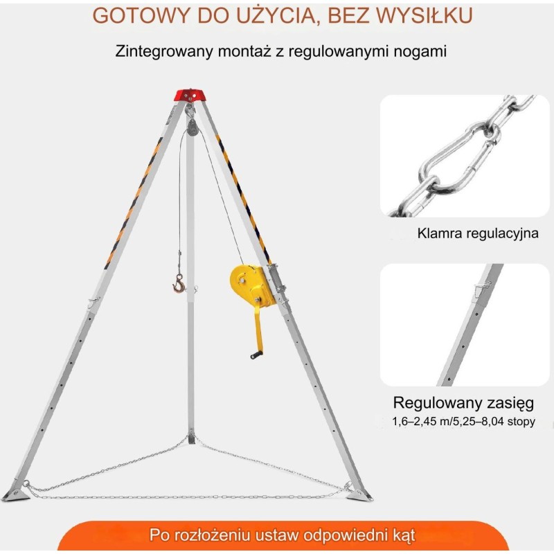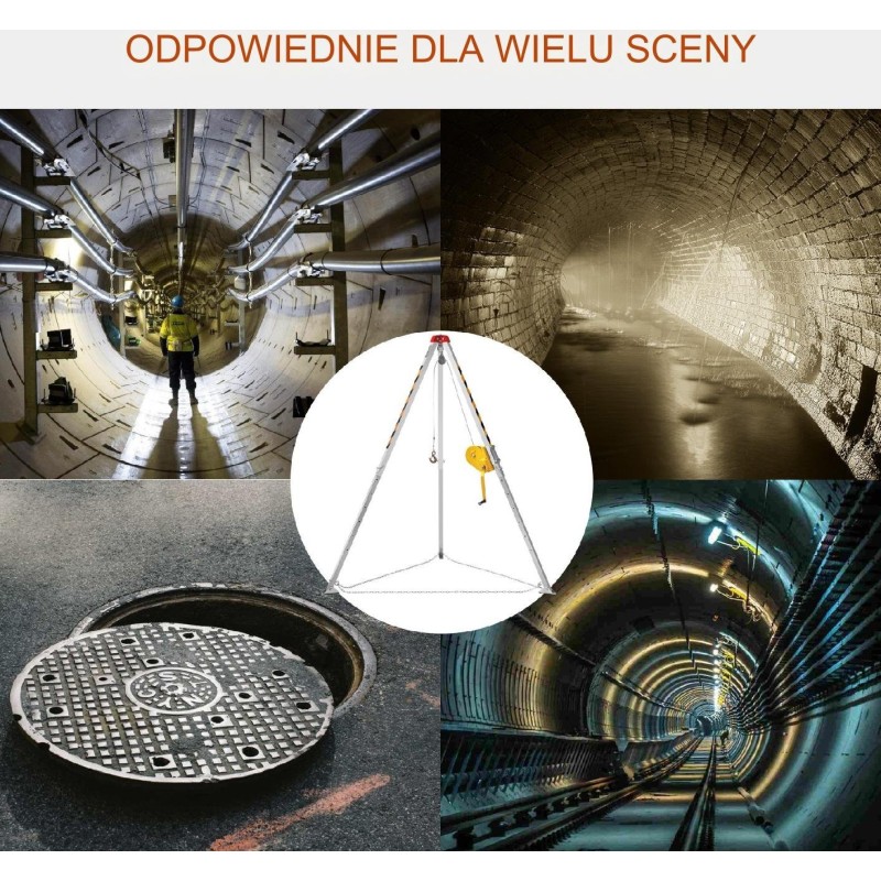 Ten trójnóg ratunkowy do przestrzeni zamkniętych jest idealny do studni, kanałów i tuneli, co sprawia, że jest łatwy w montażu i użytkowaniu. Jego zintegrowana konstrukcja zapewnia wygodę i upraszcza przechowywanie oraz transport.