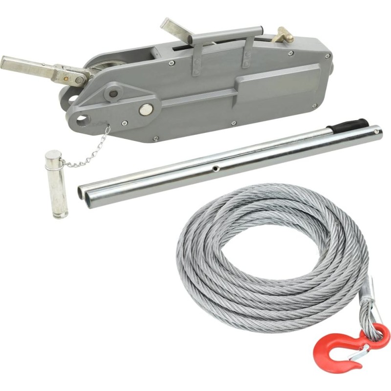 Urządzenie to ma aluminiową obudowę i mechanizm wewnętrzny ze stali nierdzewnej. Lina wyposażona jest w hak i zapadkę zabezpieczającą, a podnośnik ma zabezpieczenie przed przeciążeniem, aby zapewnić wysoki poziom bezpieczeństwa podczas pracy. Wciągarkę wyposażono w stalową linę o długości 20 m, o dużej sile zrywającej i odporności na zużycie. Wyposażona jest w hak zabezpieczający przed jej wypadnięciem. Obsługiwany przez jedną osobę, za pomocą teleskopowego uchwytu, wciągnik pozwala pracować w dowolnej pozycji i na każdej wysokości. Kompaktowa i lekka konstrukcja sprawia, że produkt ten jest odpowiedni do niewielkich lub ograniczonych przestrzeni.