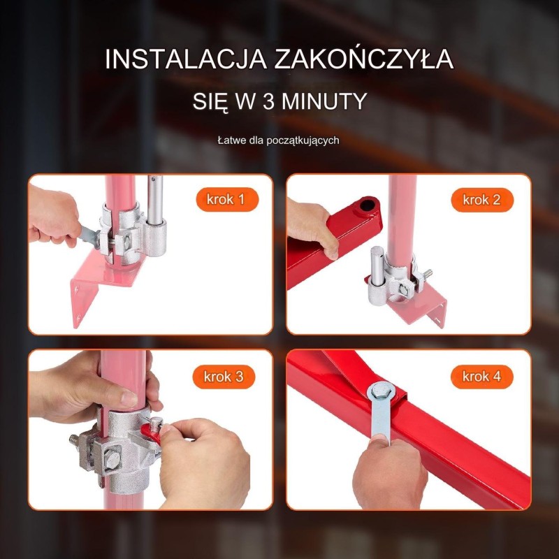 Brak potrzeby skomplikowanego montażu! Nasz podnośnik teleskopowy można złożyć w kilka minut, bez potrzeby specjalnych umiejętności. Został zaprojektowany, aby szybko uruchomić urządzenie, pozwalając Ci skupić się na pracy bez obaw o problemy z instalacją.