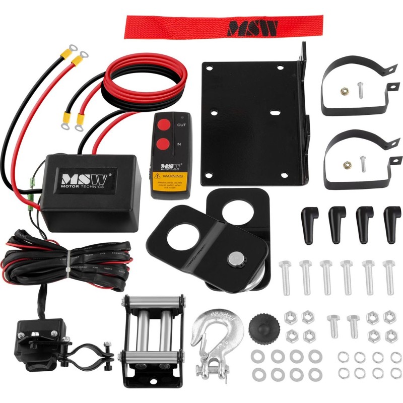 MSW Wyciągarka samochodowa - off road na pilota lina 12 m uciąg 1590 kg + Zblocze 4 T