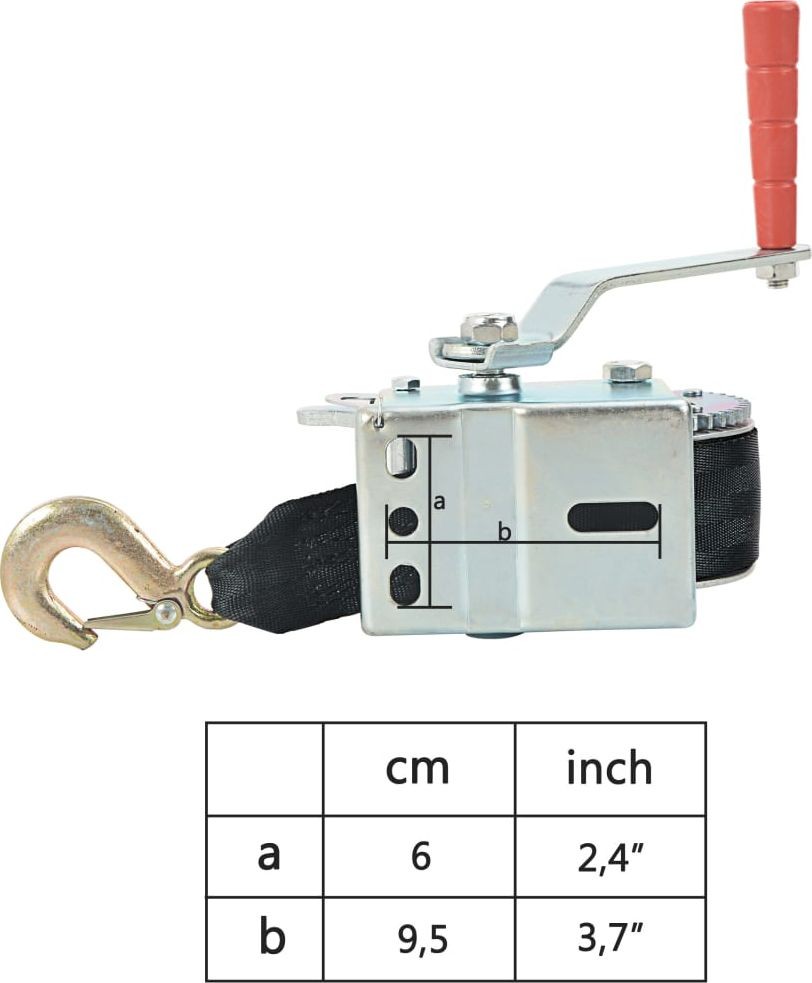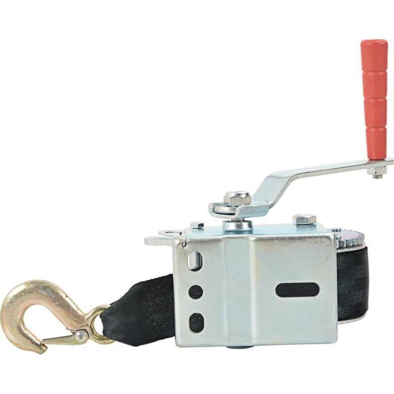 Ta ręczna wyciągarka z parcianą taśmą jest idealna do podnoszenia pojazdów i przyczep, a także innych zastosowań. W naszym sklepie znajdziesz pasujący stojak do montażu wciągarki na łodzi (SKU 90634), dzięki któremu skompletujesz cały zestaw.