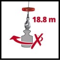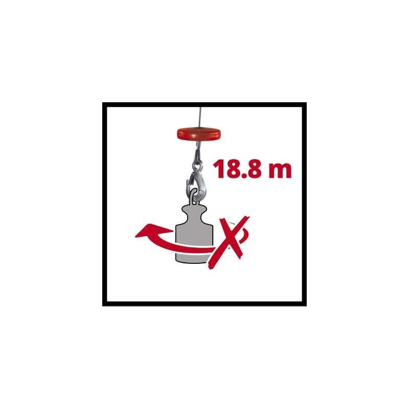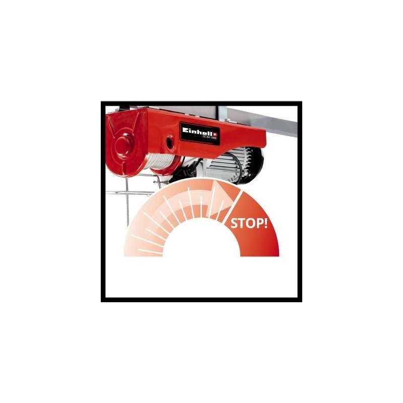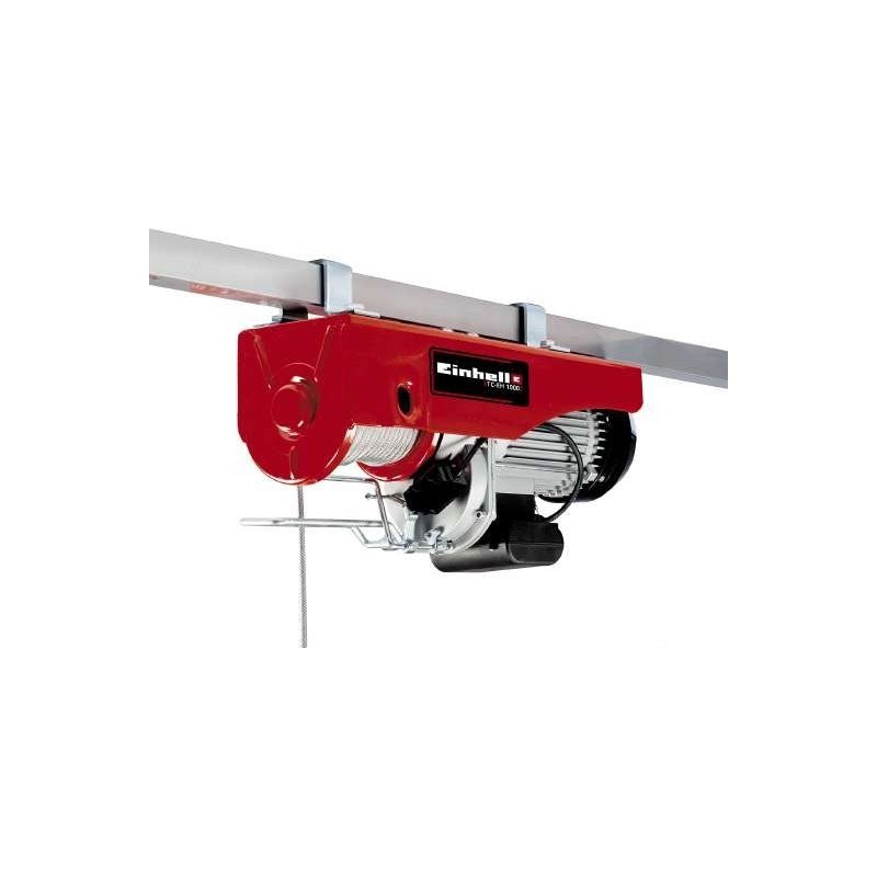 Einhell TC-EH 1000. Maksymalne obiążenie: 999 kg, Wysokość uźwigu bez zblocza: 18 m, Wysokość udźwigu ze zbloczem: 9 m. Moc silnika: 1600 W, Napięcie wejściowe AC: 220 - 240 V, Częstotliwość wejściowa AC: 50 Hz. Szerokość produktu: 244 mm, Głębokość produktu: 544 mm, Wysokość produktu: 343 mm