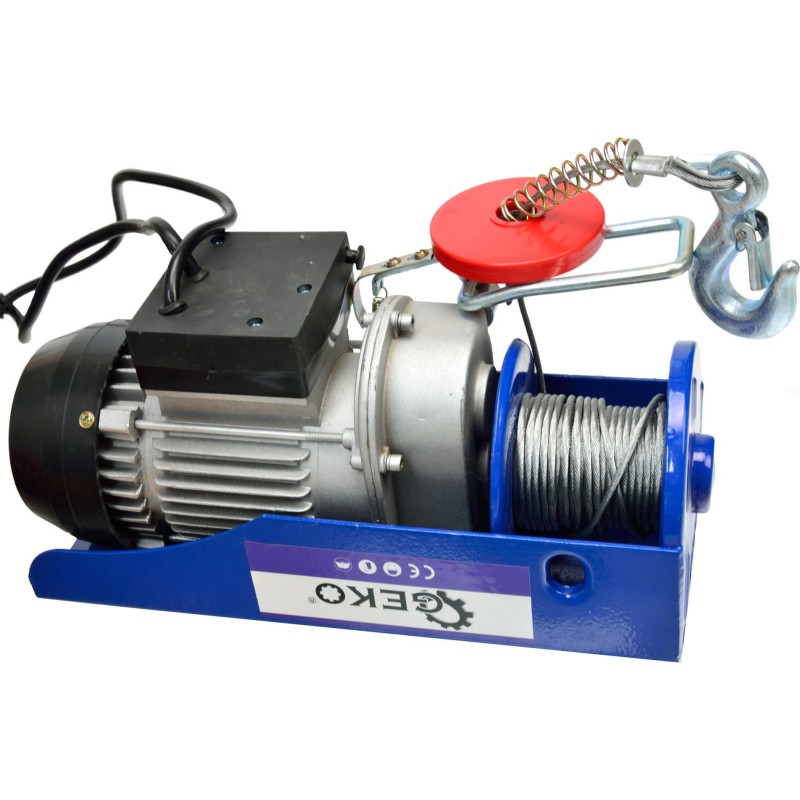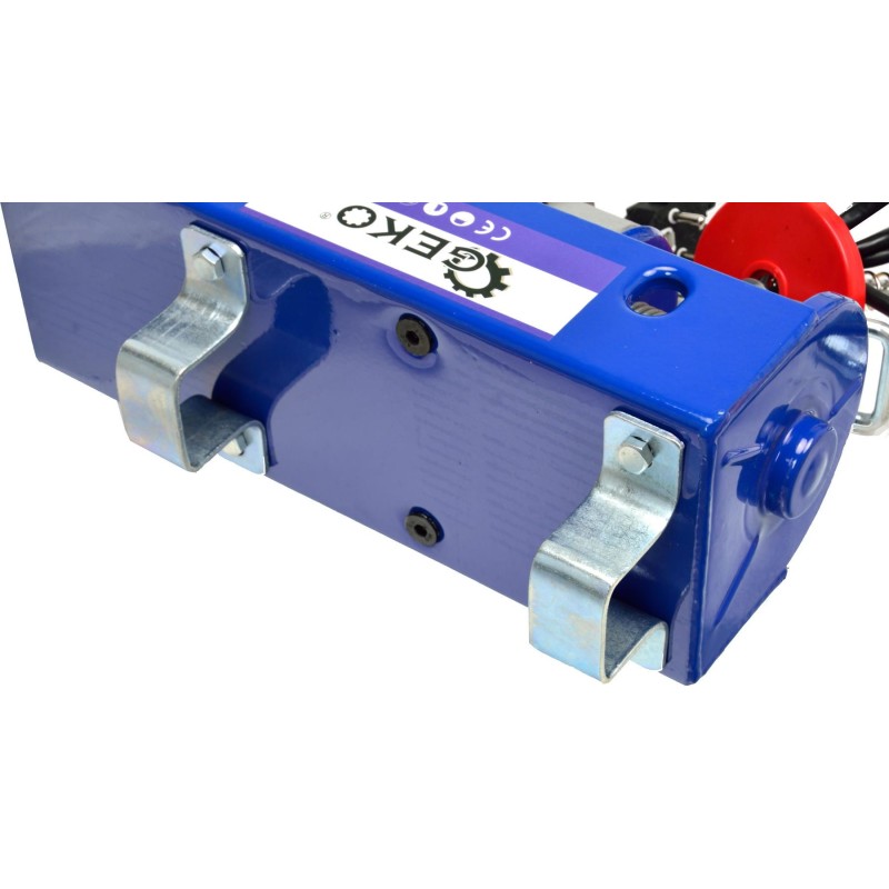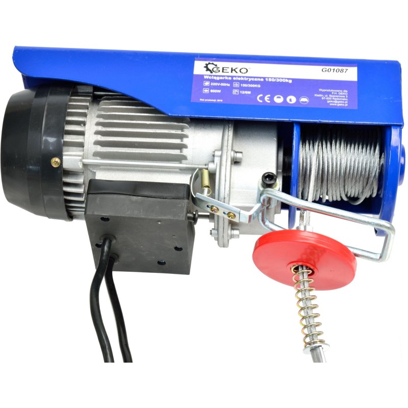 Profesjonalna wciągarka/wyciągarka elektryczna linowa o mocy 600W i udźwigu do 300 kg. Wyciągarka jest profesjonalnym urządzeniem służącym do podnoszenia ciężkich przedmiotów w płaszczyźnie pionowej. Powszechnie wykorzystywana do budowy i remontu domów oraz do pracy w serwisach mechanicznych. Cechy produktu moc 600W długość liny: 12 m średnica linki: 4 mm wymiary podstawy: 133 x 335 mm udźwig na jednym haku: 150 kg udźwig na dwóch hakach: 300 kg szybkość podnoszenia na jednym haku: 10 m/min szybkość podnoszenia na dwóch hakach: 5 m/min wysokość podnoszenia na jednym haku: 12 m wysokość podnoszenia na dwóch hakach: 6 m automatyczny wyłącznik bezpieczeństwa wytrzymała aluminiowa obudowa silnika z powiększonymi żeberkami, co pozwala na bardziej skuteczne odprowadzanie ciepła powiększona turbina chłodząca silnika ergonomiczny pilot sterujący z kablem o długości 140cm certyfikat CE Elementy zestawu wciągarka linowa elektryczna 2 uchwyty mocujące 4 śruby mocujące z podkładkami dodatkowy hak z kołowrotkiem