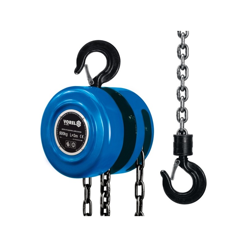 Wyciągarka łańcuchowa jest urządzeniem służącym do podnoszenia ciężkich przedmiotów w płaszczyźnie pionowej. Posiada napęd ręczny i sprawną przekładnię planetarną, która pozwala na podniesienie max masy od 500 do 3 000 kg (w zależności od modelu wyciągarki). Łańcuch jest wykonany z wysokiej jakości stali, odpornej na rozciąganie oraz starzenie. 100% ogniw jest łączona metodą zgrzewania oporowo-iskrowgo, co gwarantuje odpowiednia jakość i wytrzymałość zgrzeiny. Ogniwa są również kalibrowane dla zapewnienia odpowiedniego kształtu i wymiarów każdego z nich oraz sprawdzenia ich wytrzymałości. Wyciągarka wyposażona jest w bezpieczne haki posiadające blokadę uniemożliwiającą wypięcie się ładunku.
