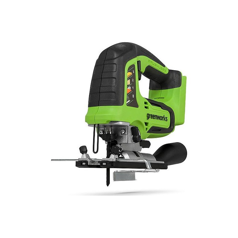 Główną zaletą tego urządzenia jest innowacyjny silnik. Jest to pierwsza wyrzynarka Greenworks 24V z silnikiem bezszczotkowym. Bez szczotek narzędzie wytrzyma o 40% dłużej niż jego szczotkowy odpowiednik. Ponadto, ze względu na brak tarcia szczotki, moc narzędzia jest zwiększona, a wibracje zmniejszone, dzięki czemu praca z nim jest wygodniejsza.