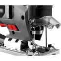 Wyrzynarka 600W, ilość suwów 800-3000 min, kąt nachylenia stopy 0-45. w prawo/lewo, głębokość cięcia w drewnie/stali 80/8 mm, skok brzeszczotu 18 mm, ruch wahadłowy brzeszczotu 0-III, aluminiowa baza, beznarzędziowa wymiana brzeszczotu, gumowy uchwyt, funkcja podrzynania, akcesoria: prowadnica, klucz specjalny, brzeszczot, końcówka do odsysania pyłu. Waga 1,72 kg